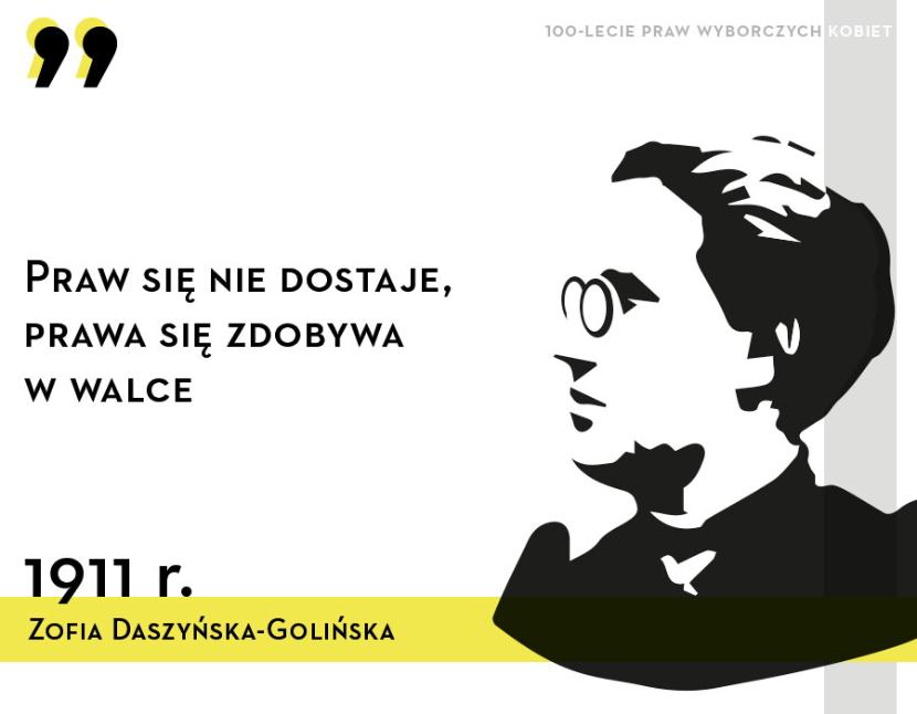 Zofia Daszyńska-Golińska (1866–1934)– socjolożka, historyczka, działaczka społeczna. W 1914 r. współtworzyła niepodległościową organizację kobiecą – Ligę Kobiet. W latach 1917–19 była redaktorką naczelną pisma „Na Posterunku. Tygodnik kobiecy poświęcony sprawom społecznym, ekonomicznym, pedagogicznym i etycznym”, w którym walka o równouprawnienie polityczne kobiet ściśle łączyła się z zagadnieniem odzyskania niepodległości. Naukowo zajmowała się warunkami życia robotników, społecznie działała na rzecz ruchu feministycznego i walki z alkoholizmem. W swoich tekstach oprócz praw politycznych kobiet poruszała kwestie rodziny i małżeństwa.
