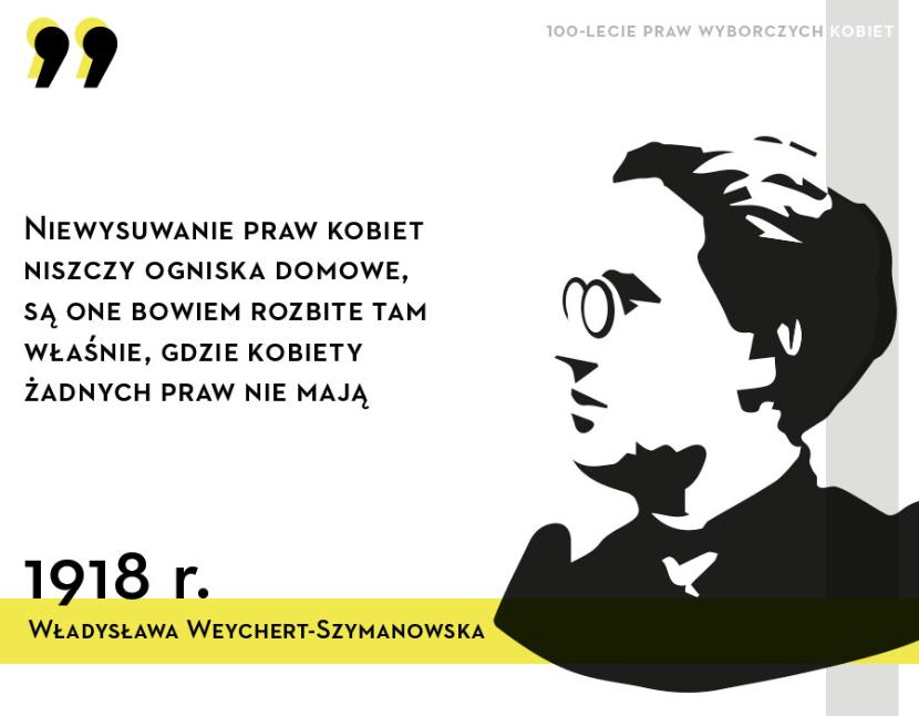 Władysława Weychert-Szymanowska (1874–1951)– pisarka, publicystka, działaczka pedagogiczna. Przewodnicząca Towarzystwa Klubów Kobiet Pracujących, przez lata związana z Wydziałem Kobiecym PPS. Od 1913 r. członkini ruchu niepodległościowego Ligi Kobiet Polskich. W swojej działalności na rzecz równouprawnienia kobiet zajmowała się przede wszystkim prawami politycznymi kobiet.