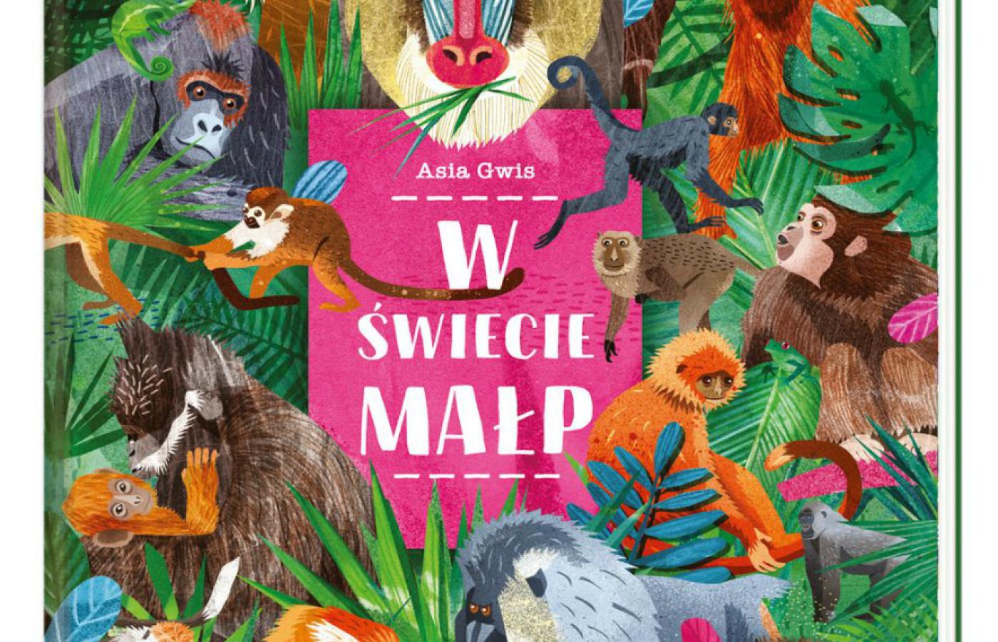 Asia Gwis, <b>W świecie małp</b>, Nasza Księgarnia, Warszawa 2019. „W świecie małp” to kartonowa, edukacyjna publikacja o ssakach naczelnych. Poszczególne rozkładówki poświęcone są bardzo konkretnym tematom lub gatunkom. Osobna rozkładówka trafia się szympansom i gorylom, ale dowiemy się także, co jedzą małpy, jak zachowują się w stadach lub jak się komunikują. Informacji jest tu w sam raz – to wielka zaleta tej książki, że nie przytłacza nadmiarem danych. Z kolei w warstwie wizualnej w niektórych planszach wkrada się delikatny chaos i przeszacowanie liczby elementów, jakie oko może udźwignąć. Z drugiej strony Asia Gwis jest wyśmienitą kolorystką, a małpy to niezwykle barwny temat. Dosłownie i w przenośni.