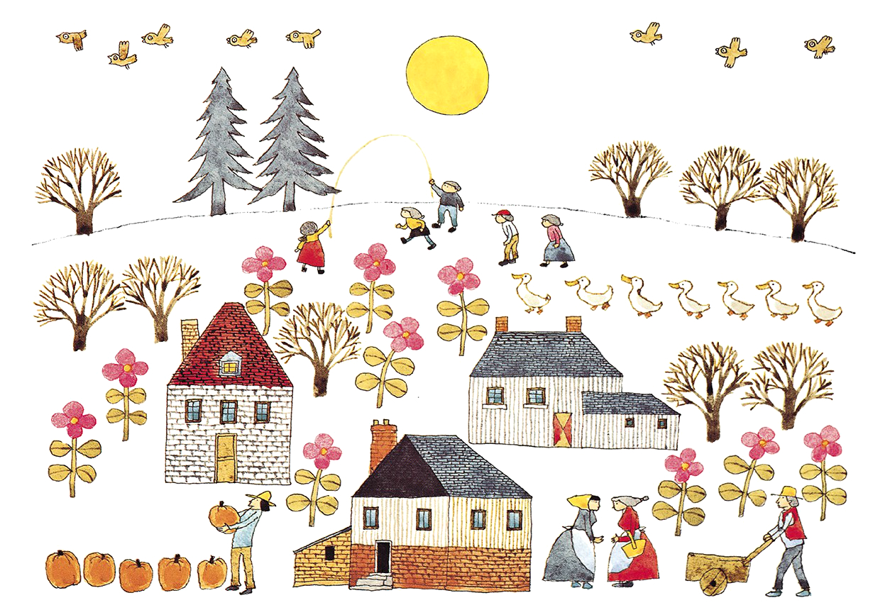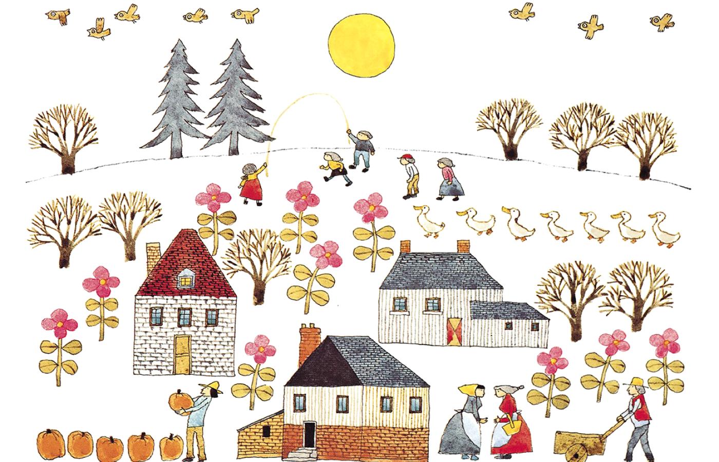 Mitsumasa Anno, „Liczymy razem”, Wydawnictwo Tako, Toruń 2019. Wiele bym dał, żeby ktoś w moim peerelowskim dzieciństwie uczył mnie matematyki na takich książkach. „Liczymy razem” to przede wszystkim doskonały, skrajnie prosty, a jednocześnie działający koncept. Książka przedstawia życie małej wiejskiej społeczności. Każda rozkładówka oznaczona jest cyfrą i w zależności od tej cyfry mały czytelnik musi znaleźć inną liczbę takich samych elementów na stronie, np. siedem krów, siedem iglastych drzew, siedem budynków. W trakcie poszukiwań zmieniają się pory roku, prace w polu i życie w osadzie. Doskonała rzecz.