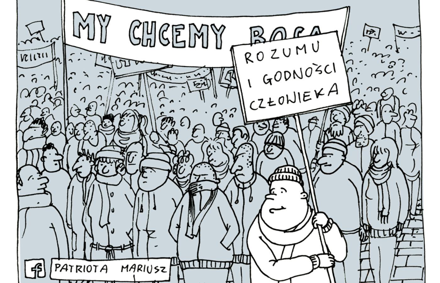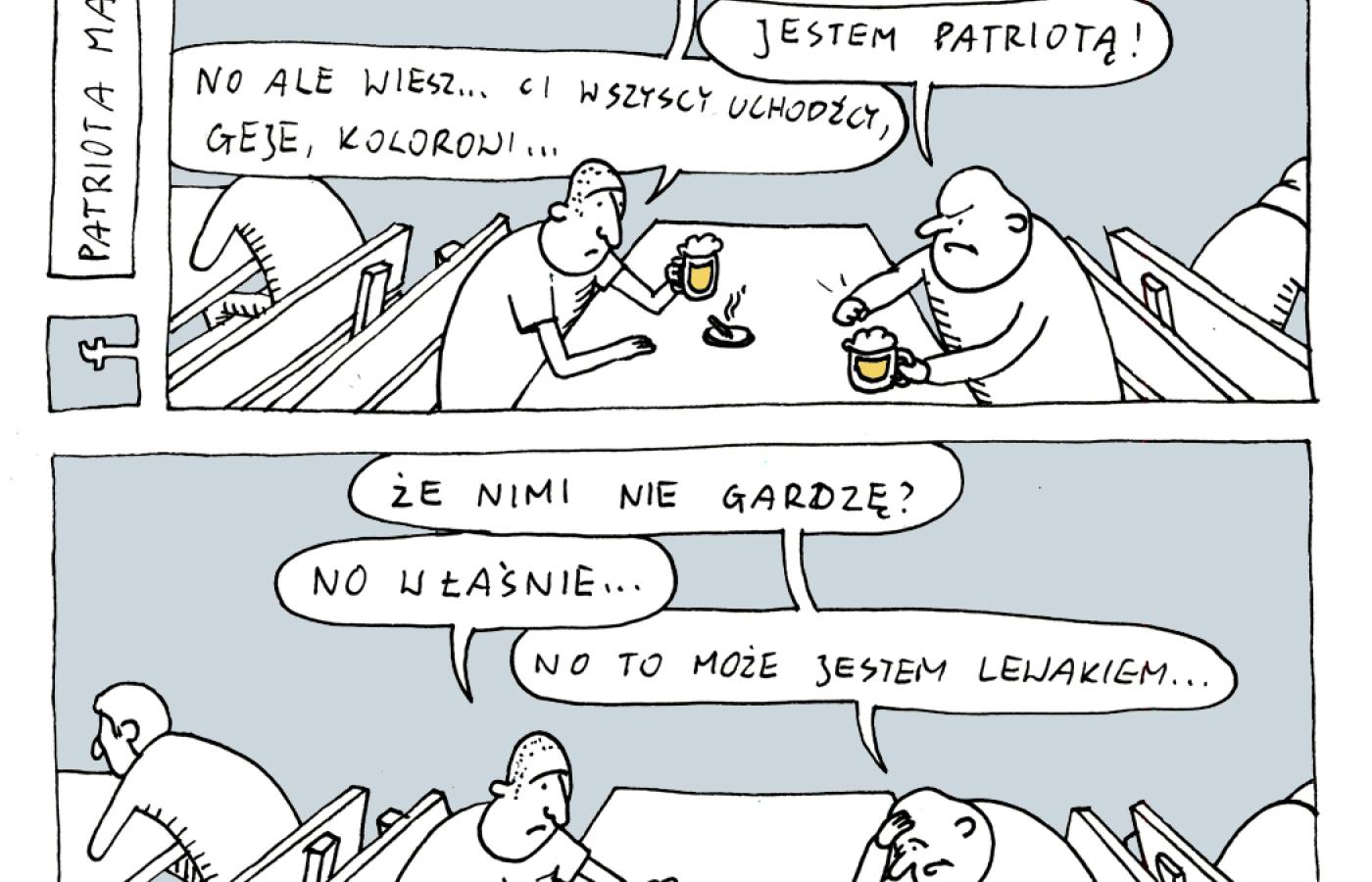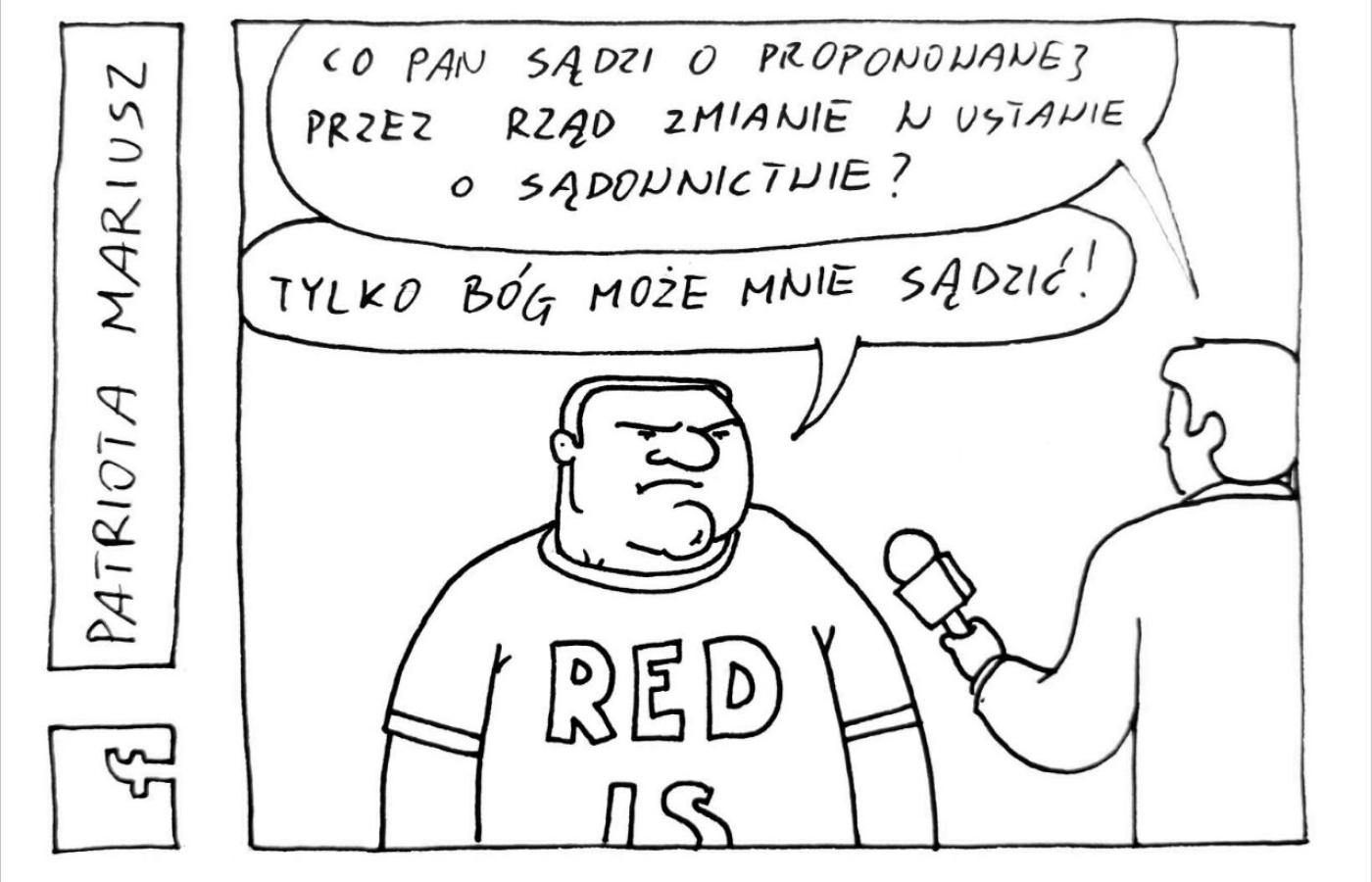 „Patriota Mariusz” – komiks tworzony przez duet Adam Walas&Krystian Nowak – komentuje zarówno te ważniejsze, jak i zupełnie nieistotne wydarzenia z kraju.