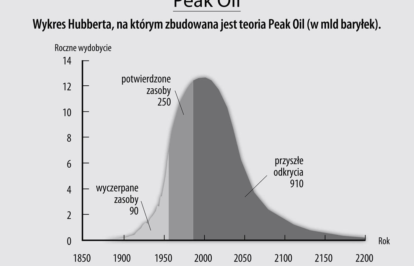 Pierwszym, który przedstawił ponurą wizję przyszłości człowieka węglowodorowego, był amerykański geofizyk Marion King Hubbert. W 1956 r. sporządził on model rezerw ropy. Z jego wyliczeń wynikało, że wydobycie ropy w USA osiągnie swój szczyt między 1965 a 1970 r., a potem zacznie się kurczyć. Teoria szczytu wydobycia ropy, zwana Peak Oil, zyskała szybko liczną rzeszę zwolenników. Przybyło ich szczególnie wielu w latach 70., kiedy rzeczywiście wydobycie w USA zaczęło się kurczyć. Wydawało się, że jego teoria ma charakter uniwersalny i można ją zastosować do innych paliw kopalnych.