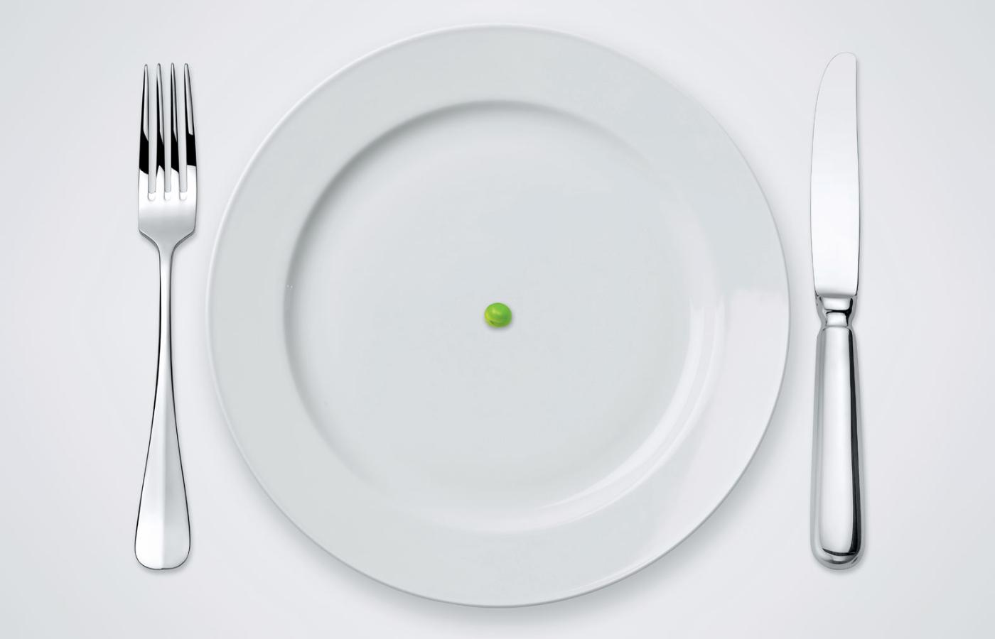 Im większe stawia się przed nami porcje, tym więcej jemy. Brian Wansink, dyrektor Laboratorium Pożywienia i Marek na Cornell University, stworzył „bezdenny talerz do zupy”, który napełniał się niepostrzeżenie dzięki systemowi rurek i ciśnieniu. Badani zjadali z niego równowartość kilku porcji. Zakładali, że skoro wciąż jest pełny, to zjedli za mało i nadal są głodni. Uczony doszedł do wniosku, że ludzie o tym, czy się najedli, decydują na podstawie tego, co widzą, a nie swoich odczuć. Warto więc używać mniejszych talerzy. Ta sama porcja wygląda na nich na większą, niż gdy podać ją na standardowym. Poza tym im mniej mamy na talerzu, tym mniej musimy zjeść, żeby odczuć sytość.