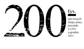Wreszcie drgnęło na amerykańskim rynku pracy – w grudniu 2011 r. stopa bezrobocia spadła do 8,5 proc., czyli poziomu z lutego 2009 r., gdy rozpoczynała się amerykańska recesja. Tylko w ostatnim miesiącu roku w USA przybyło 200 tys. nowych miejsc pracy. Konsumenci nabrali nieco więcej wiary w przyszłość, co zademonstrowali w czasie świątecznych zakupów, wydając więcej, niż oczekiwano. Lecz wszystko to odbiega na niekorzyść od standardów wcześniejszych okresów ożywienia po recesji.