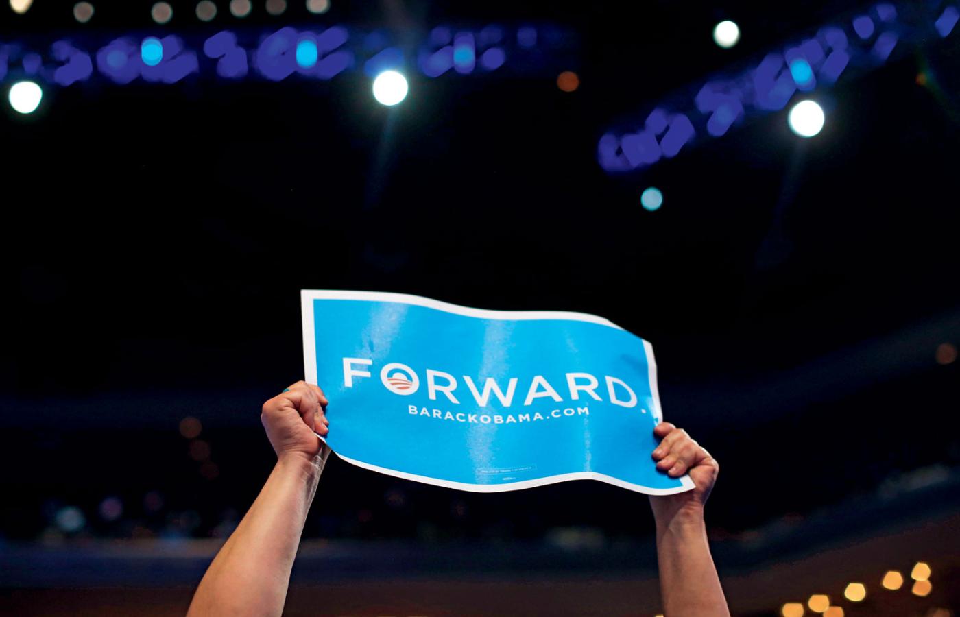 Zwykła kropka spowodowała w sztabie wyborczym Baracka Obamy zamieszanie godne co najmniej wykrzyknika. Poszło o hasło kampanii ubiegającego się o reelekcję prezydenta Stanów Zjednoczonych („Forward.”, naprzód). „To brzmi mniej więcej tak, jakbyś mówił: do przodu, a teraz stój” – krytykował publicznie swojego pracodawcę jeden z doradców Obamy i jego śmiałość nie dziwi o tyle, że sam prezydent również z dystansem odnosi się do własnego sloganu. „Naprzód. Kropka. Cała stop” – miał żartować na jednym z posiedzeń sztabu. David Axelrod, od którego Obama uczył się podstaw komunikacji z wyborcami, zaproponował: „Dołóżcie jeszcze dwie kropki i wyjdzie na to, że jednak naprzód...”.