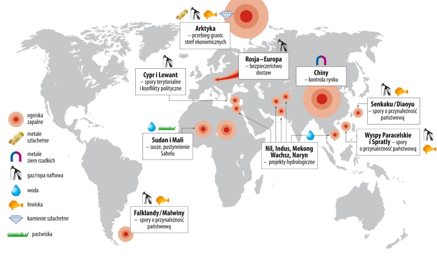 Na szczęście na horyzoncie nie rysuje się jeszcze żaden globalny konflikt, jednak państwa i przedsiębiorstwa robią wiele, by zabezpieczyć się przed – to pojęcie robi ostatnio karierę – szokami surowcowymi, odpowiednikami szoków naftowych. Chcą to osiągnąć, chroniąc ważne dla siebie szlaki handlowe, dbając o utrzymanie przywilejów w handlu międzynarodowym i troszcząc się o źródła przyszłych dostaw. Trudno więc nie zauważyć, że wraz z końcem zimnej wojny weszliśmy w epokę zaciekłej rywalizacji o zasoby. I co powinno nas niepokoić to fakt, że w rywalizacji tej nadal otwierane są nowe fronty.