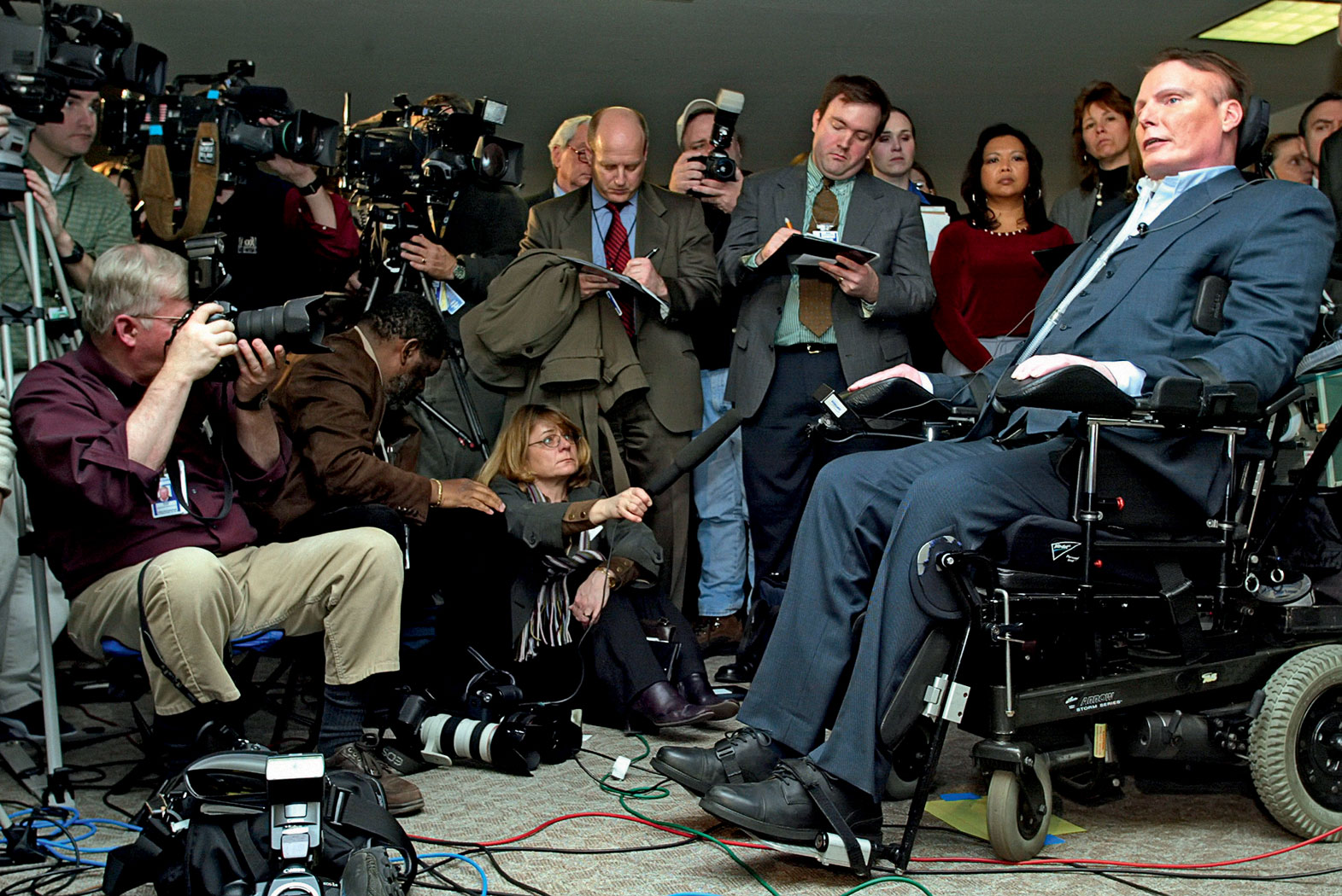 Prof. Stephen Hawking jest astrofizykiem, prestiż przyniosły mu studia nad grawitacją kwantową i analiza czarnych dziur oraz bestsellerowa książka „Krótka historia czasu”. Ale masową popularność zdobył jako ambasador pacjentów skazanych na paraliż z powodu ciężkiej choroby neurologicznej, jaką jest stwardnienie zanikowe boczne. Zdiagnozowano ją u niego, gdy miał 21 lat, w 1963 r. Od tamtej pory stopniowo tracił władzę nad ciałem. Na co dzień żyje dzięki maszynom: porusza się na wózku inwalidzkim, ze światem zewnętrznym porozumiewa dzięki syntezatorowi mowy, do którego wprowadza wypowiedzi przez klawiaturę. Komputer włącza drgnieniem policzka (tylko taka możliwość ruchu mu pozostała; na oprawce okularów ma zainstalowany czujnik podczerwieni, który reaguje na skurcze mięśni), przy pisaniu korzysta ze specjalnego oprogramowania ACAT, które z kontekstu pierwszych liter i słów bezbłędnie domyśla się dalszego ciągu. W ten sposób powstają jego eseje i popularnonaukowe artykuły rozchwytywane przez największe wydawnictwa na świecie.