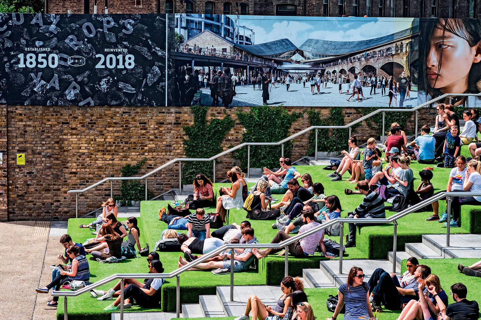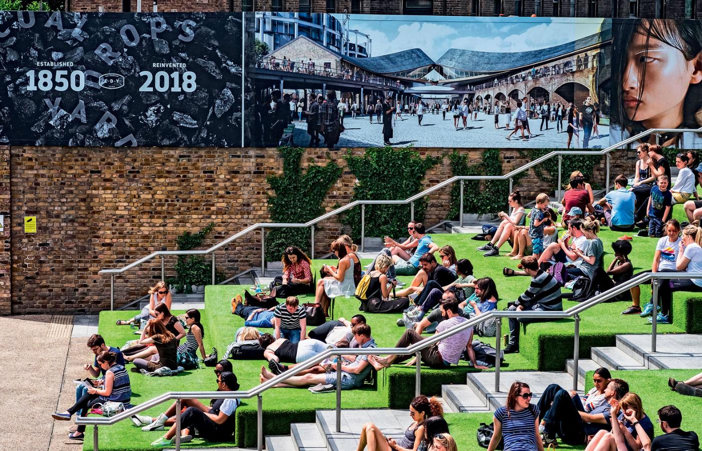 Nie ma teraz w Londynie miejsca modniejszego niż Granary Square. Duży plac na tyłach stacji kolejowych Kings Cross i St. Pancrass jest sercem największego od lat projektu rewitalizacji w brytyjskiej stolicy. W porze lunchu z biur płyną strużki ludzi, którzy w food-truckach zaopatrują się w curry, pieczone ziemniaki albo kurczaka w sezamie, po czym przysiadają na schodkach schodzących ku wodom także odnowionego Regent’s Canal. Dawna industrialna dziura jest dziś obleganym ulem – można cieszyć się fontannami, podziwiać sztukę, przychodzić na wydarzenia kulturalne. A latem poleżeć na trawiastym dywanie.