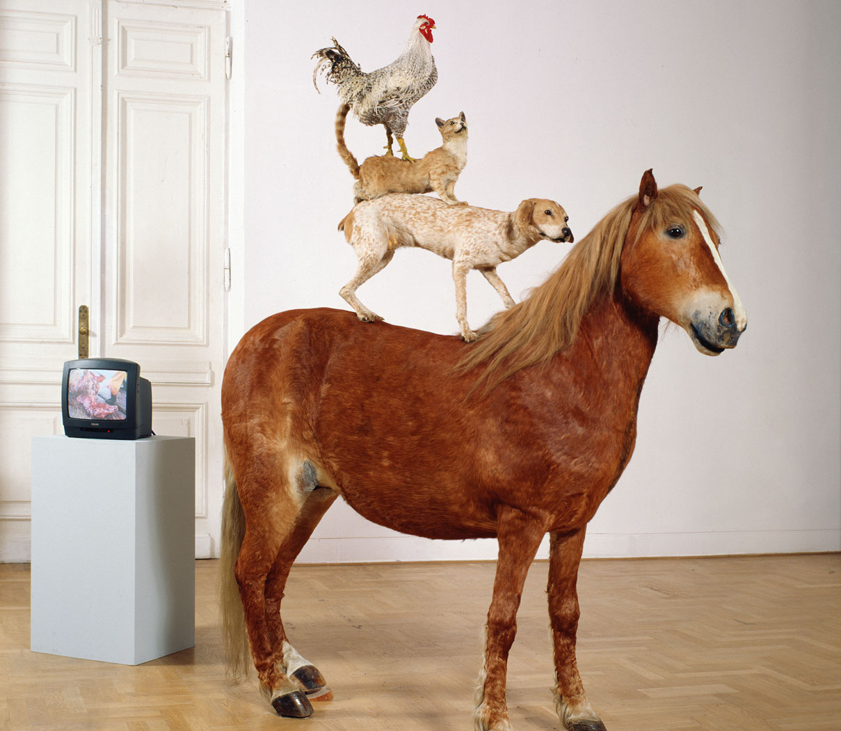 1. Katarzyna Kozyra, „Piramida zwierząt” (1993 r.). Podczas gdy my wręczaliśmy pierwszy Paszport lirycznemu malarzowi i rysownikowi Stasysowi Eidrigevičiusowi, gdzieś w pracowniach młodych artystów, głównie związanych z uczelnianą pracownią prof. Grzegorza Kowalskiego na warszawskiej ASP, dojrzewał bunt, który z czasem zebrano pod wspólnym mianem „sztuki krytycznej”. Jedną z pierwszych publicznych jego emanacji stała się praca dyplomowa Katarzyny Kozyry. Jak wiele kolejnych dzieł jej „braci i sióstr krwi”, takich jak Artur Żmijewski, Jacek Markiewicz, Grzegorz Klaman, Robert Rumas, wywołała ona szok i burzliwe spory. „Piramida” stała się symbolem sztuki niepokornej lat 90., a kolejnymi, konsekwentnie niepokornymi dziełami („Więzy krwi”, „Olimpia”, „Łaźnia”) Kozyra zapracowała na Paszport, który wręczyliśmy jej na początku 1998 r.