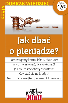 Raport POLITYKI „Jak dbać o pieniądze” w cenie 4,90 zł liczy 64 strony. Do kupienia w dobrych punktach sprzedaży prasy i w sklepie internetowym www.skleppolityki.pl .