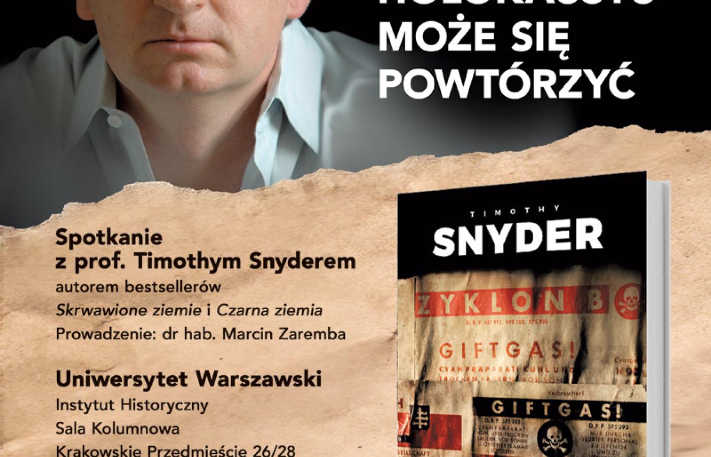 Spotkanie z Timothym Snyderem odbędzie się 16 lutego (we wtorek) w Instytucie Historycznym UW o godz. 18. Wybitny historyk dowiedzie, dlaczego zbrodnia na skalę Holokaustu mogłaby się dzisiaj powtórzyć. Spotkanie poprowadzi dr hab. Marcin Zaremba.