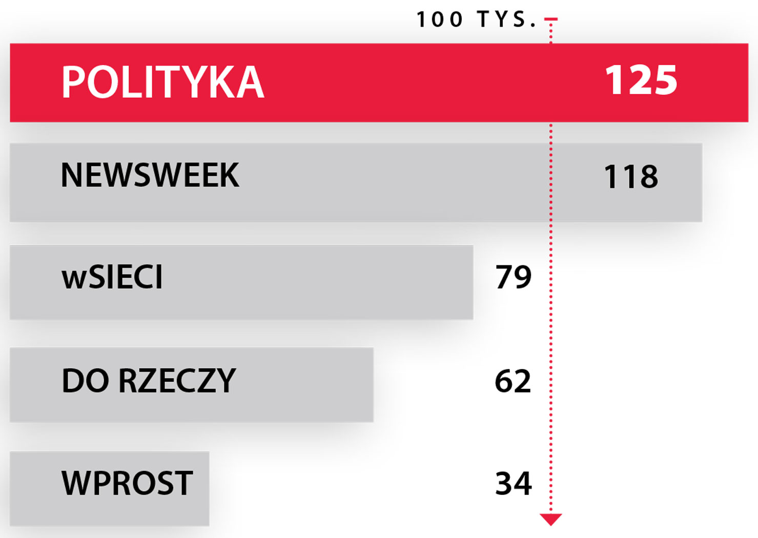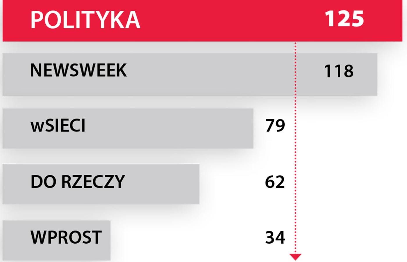 Według najnowszych danych Związku Kontroli Dystrybucji Prasy w styczniu 2016 r. POLITYKA była najchętniej kupowanym tygodnikiem opinii w Polsce. Średnia sprzedaż naszego pisma w pierwszym miesiącu bieżącego roku wyniosła 125 tys. egzemplarzy. Na drugim miejscu – ze sprzedażą 118 tys. egz. – uplasował się „Newsweek”, na trzecim – „wSieci” (średnia sprzedaż 79 tys. egz.). Pozostałe tygodniki, tj. „Do Rzeczy” i „Wprost”, sprzedawały w tym czasie odpowiednio: 62 tys. egz. i 34 tys. egz.