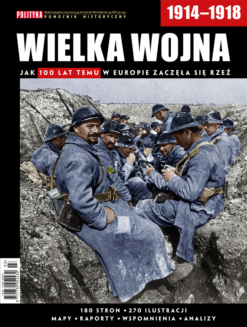 • „Pomocnik Historyczny: Wielka Wojna 1914–1918. Jak 100 lat temu w Europie zaczęła się rzeź” poświęcony pierwszemu globalnemu konfliktowi, który położył się cieniem na XX w. Kolejna rocznica wybuchu pierwszej wojny światowej jest okazją do uważnego przestudiowania tego wydarzenia. Jak do tej wojny doszło? Jak przebiegała? Czym się zakończyła? Jak jest pamiętana? I o co do dziś spierają się historycy, politycy i ideolodzy?