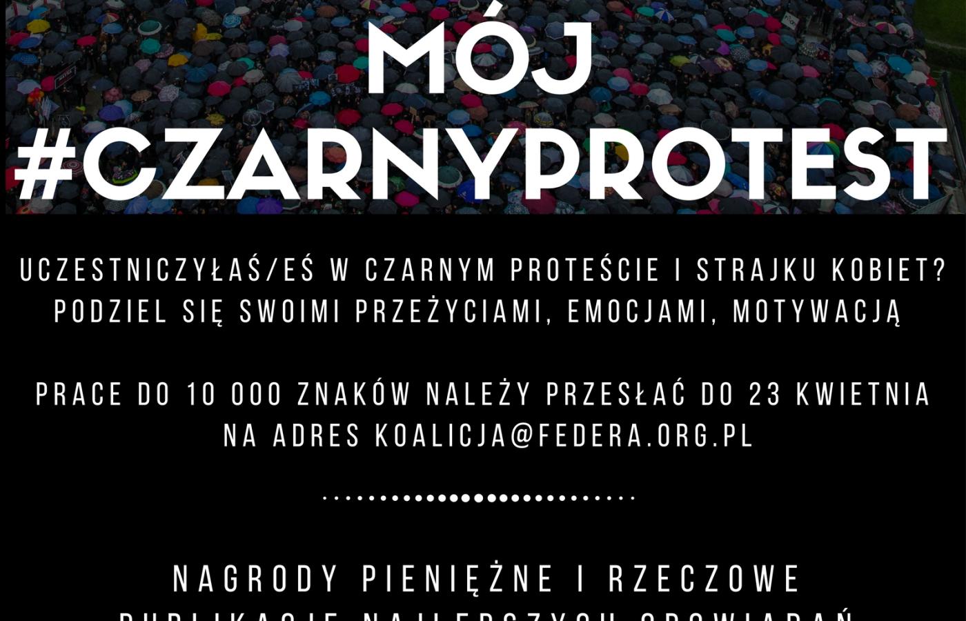 Konkurs „mój #czarnyprotest” organizowany jest przez Wielką Koalicję za Równością i Wyborem, która zrzesza prawie 70 organizacji, grup i inicjatyw nieformalnych działających na rzecz praw kobiet w Polsce.