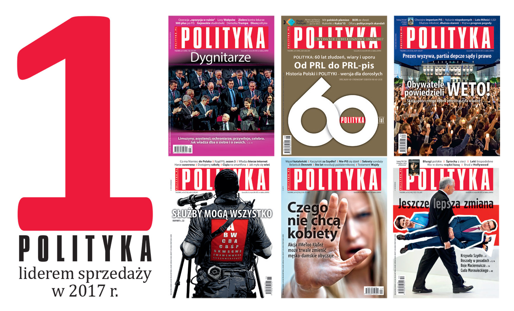 Według najnowszych danych Związku Kontroli Dystrybucji Prasy POLITYKA była najchętniej kupowanym tygodnikiem opinii w 2017 r. Z wynikiem 110 tys. egz. wydawany przez nas tygodnik miał najwyższą średnią sprzedaż w całym segmencie pism społeczno-politycznych. Na drugim miejscu, z wynikiem 97 tys. egz., uplasował się „Newsweek”. Sprzedaż pozostałych tygodników społeczno-politycznych nie przekroczyła 65 tys. egz. Tygodnik „Sieci”, który znalazł się na trzecim miejscu w zestawieniu, sprzedawał średnio 62 tys. egz. Jego najbliższy konkurent wśród pism prawicowych, czyli tygodnik „Do Rzeczy”, odnotował wynik 43 tys. egz. (zatem POLITYKA miała wyższą sprzedaż niż oba te tygodniki razem wzięte). Tygodnik „Wprost” kupowało średnio 19 tys. czytelników.
