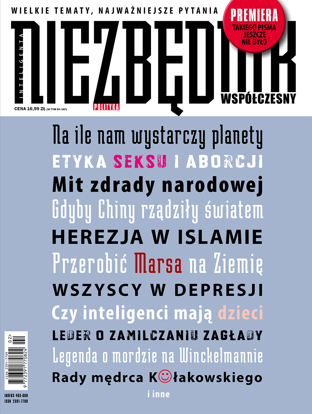 Przez ostatnie 10 lat w kolejnych monograficznych numerach „Niezbędnika Inteligenta”, firmowanych przez autorskie środowisko tygodnika POLITYKA, zastanawialiśmy się nad postępami nauki, dziedzictwem religii, konsekwencjami naprawiania i poprawiania ludzi, możliwościami spełnienia się utopii. Analizowaliśmy zjawiska takie jak post-prawda, przyglądaliśmy się działaniu mózgu i ostrzegaliśmy przed globalnymi zagrożeniami, jakim – raczej prędzej niż później – ludzie będą musieli stawić czoła. Ale spraw, o których naprawdę warto i trzeba by rozmawiać, jest tyle, że odstępujemy od formuły monotematycznej, zmieniamy nasze wydawnictwo w „Niezbędnik Współczesny” i do jego lektury zaprosimy częściej, co kilka tygodni – jeśli się Państwu ta formuła spodoba. Dla nas, Droga Czytelnicza Sekto, to także pewien eksperyment. Może takie czasopismo – zawierające eseje i „nieśpieszną” publicystykę o Polsce, człowieku i jego kondycji, o dziwnym świecie, w jakim żyjemy, o cywilizacji, jaką tworzymy – jest dziś potrzebne bardziej niż kiedykolwiek; a może już kompletnie nie? My wciąż wierzymy, że czytanie jest niezbędne do życia.