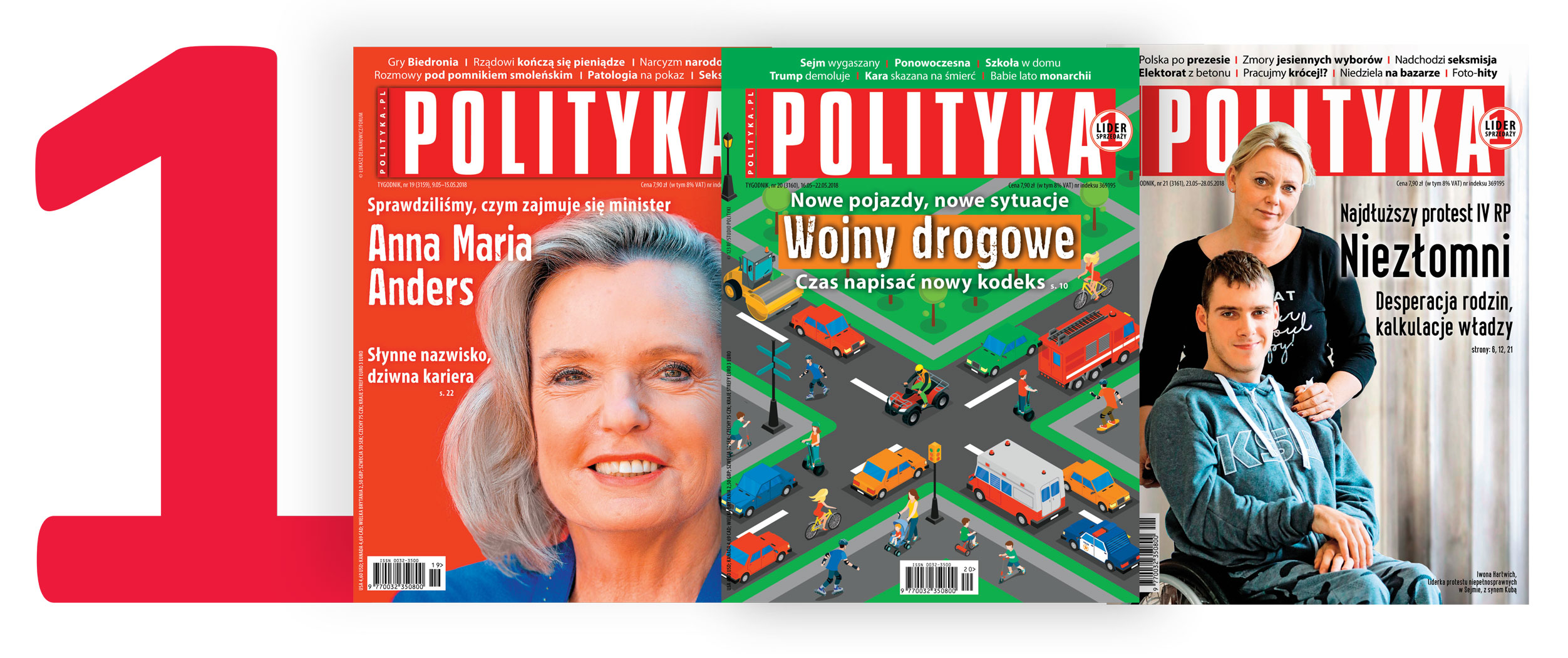 Według najnowszych danych Związku Kontroli Dystrybucji Prasy również w maju 2018 r. POLITYKA była najchętniej kupowanym tygodnikiem opinii w Polsce. Średnia sprzedaż naszego tytułu wynosiła za pięć miesięcy 100 tys. egz. na wydanie, w samym maju 94 tys. – czyli o 8 tys. egz. więcej niż „Newsweeka” (86 tys. egz.). i o prawie 52 tys. egz. więcej niż „Sieci” (42 tys. egz.). Jeszcze bardziej widoczna stała się różnica między sprzedażą POLITYKI a pozostałymi tytułami z segmentu: tygodnik „Do Rzeczy” odnotował sprzedaż na średnim poziomie 34 tys. egz., „Tygodnik Powszechny” sprzedawał średnio 26 tys. egz., „Gazeta Polska” 24 tys. egz. Stawkę zamykał tygodnik „Wprost” ze sprzedażą ok. 20 tys. egz.