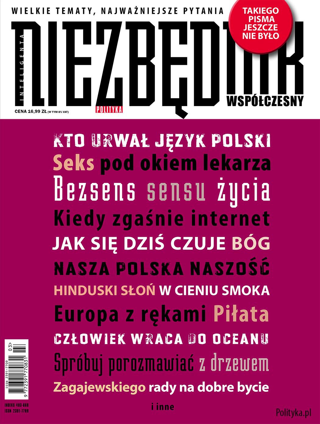 W tym wydaniu stawiamy na przykład pytanie, ni mniej, ni więcej, ale o sens życia. O odpowiedź, a właściwie o rozprawę z historią i samym sensem tego pytania poprosiliśmy prof. Jana Hartmana, wybitnego filozofa, etyka, a przy tym intelektualnego prowokatora (…). Ale, idąc tropem pierwszego wydania „Niezbędnika”, gdzie znalazła się historyczna, bo sprzed 10 lat, rozmowa z prof. Leszkiem Kołakowskim o tym, jak dobrze żyć, poprosiliśmy Jacka Żakowskiego, aby mniej więcej o to samo – czyli co jest w życiu dobre? – zapytał znów kogoś mądrego. I mamy obszerny wywiad z Adamem Zagajewskim, znakomitym poetą i eseistą, od lat jednym z faworytów do literackiej Nagrody Nobla.