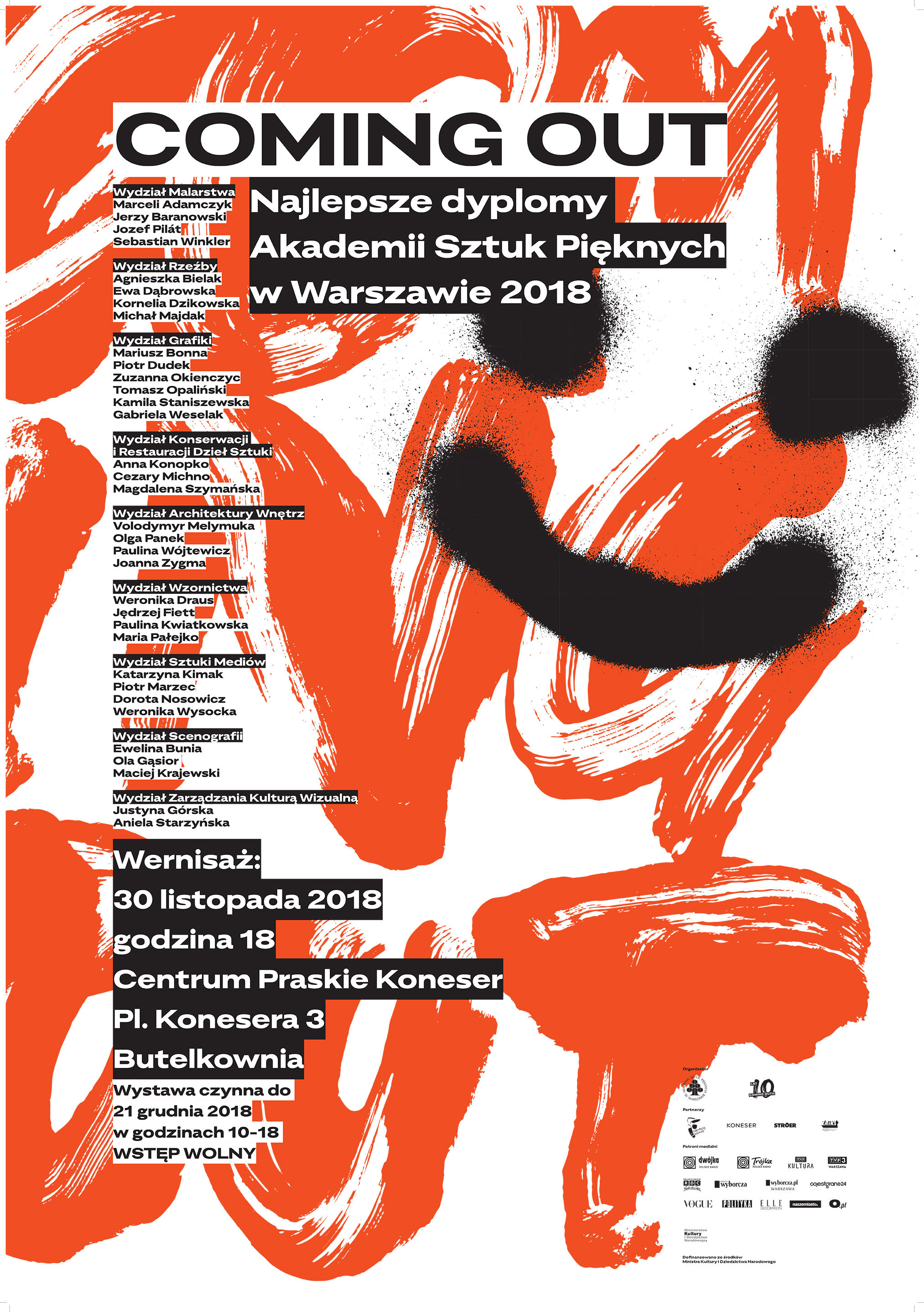 30 listopada br. odbędzie się wernisaż X. edycji wystawy Coming Out prezentującej 34 najlepsze prace dyplomowe studentów warszawskiej Akademii Sztuk Pięknych. Wydarzenie to już na stałe wpisało się do kulturalnego kalendarza stolicy. W tym roku prace najzdolniejszych studentów zaprezentowane zostaną w nowoczesnej przestrzeni Centrum Praskiego Koneser przy Pl. Konesera 3 (Butelkownia), otwarcie wystawy o godzinie 18.00.