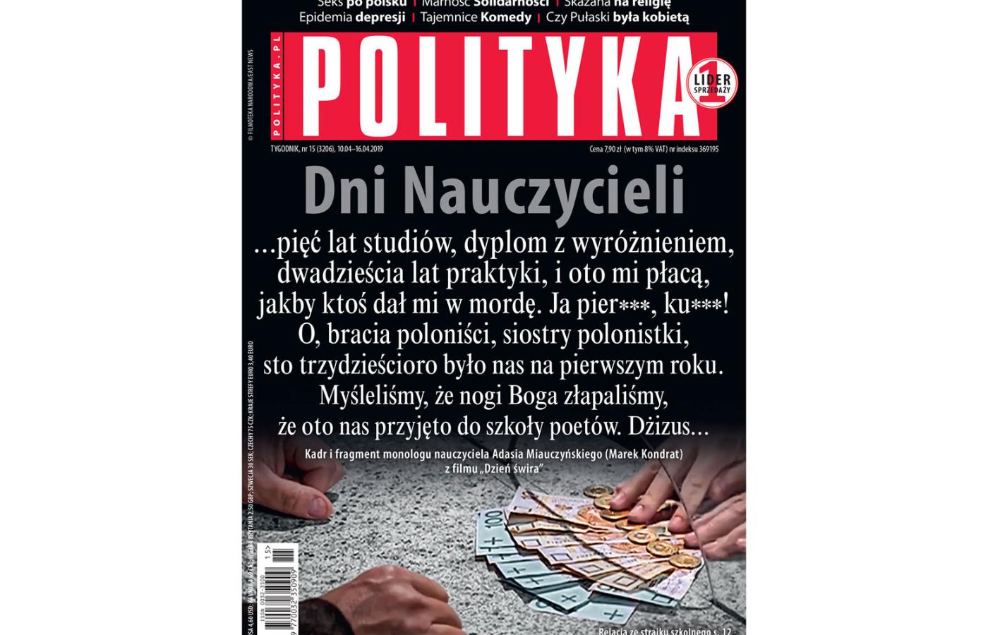 Na okładce ostatniego numeru POLITYKI znalazł się fragment monologu oraz kadr z filmu „Dzień świra” Marka Koterskiego. W uzupełnieniu do zamieszczonego tamże podpisu – na prośbę Studia Filmowego „Zebra” – pragniemy poinformować, że autorem scenariusza i reżyserem jest Marek Koterski. Film został wyprodukowany w 2002 r. przez Studio Filmowe „Zebra”, Vision Film oraz Non Stop Film Service, a jego głównymi producentami byli Juliusz Machulski i Włodzimierz Otulak. Zdjęcia do filmu nakręcił Jacek Bławut, autorem muzyki był Jerzy Satanowski, za scenografię odpowiadał Przemysław Kowalski, za montaż zaś – Ewa Smal. Film trwa 90 minut. Jego dystrybutorem jest Vision.