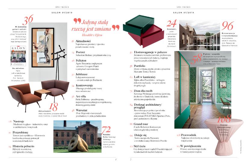 W tym numerze „Salonu” Czytelnicy znajdą też przewodnik po najlepszych showroomach wnętrzarskich oraz przegląd najciekawszych premier i zjawisk w projektowaniu.