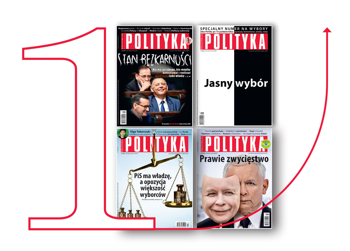 Miło nam poinformować, że POLITYKA niezmiennie jest najchętniej kupowanym tygodnikiem opinii w Polsce. Najnowsze dane Związku Kontroli Dystrybucji Prasy pokazują, że również w październiku 2019 r. POLITYKA – sprzedając średnio 93 tys. egzemplarzy – pozostawiła konkurencję daleko w tyle. Na drugim miejscu zestawienia ZKDP uplasował się „Newsweek”, który sprzedawał przeszło 20 tys. egz. mniej (październik zamknął z wynikiem 71 tys. średnio sprzedanych egz.). Natomiast pozostałe tygodniki osiągnęły sprzedaż: „Sieci” – 38 tys. egz., „Do Rzeczy” – 30 tys. egz., „Tygodnik Powszechny” – 27 tys. egz., „Gazeta Polska” – 21 tys. egz., „Wprost” – jedynie 14 tys. egz.