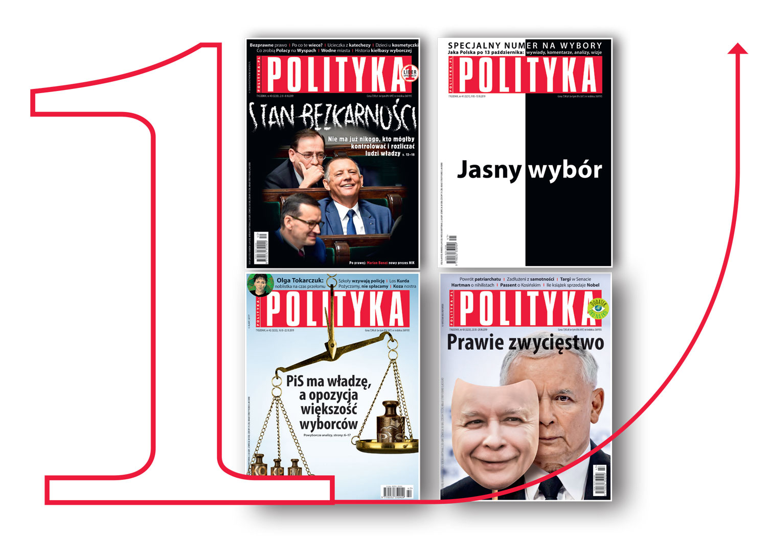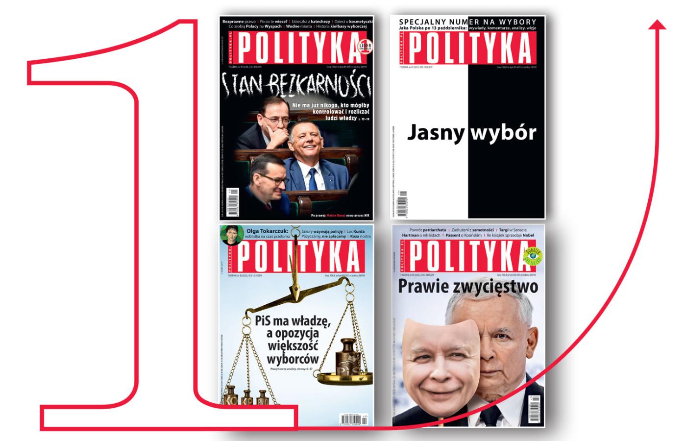 Miło nam poinformować, że POLITYKA niezmiennie jest najchętniej kupowanym tygodnikiem opinii w Polsce. Najnowsze dane Związku Kontroli Dystrybucji Prasy pokazują, że również w październiku 2019 r. POLITYKA – sprzedając średnio 93 tys. egzemplarzy – pozostawiła konkurencję daleko w tyle. Na drugim miejscu zestawienia ZKDP uplasował się „Newsweek”, który sprzedawał przeszło 20 tys. egz. mniej (październik zamknął z wynikiem 71 tys. średnio sprzedanych egz.). Natomiast pozostałe tygodniki osiągnęły sprzedaż: „Sieci” – 38 tys. egz., „Do Rzeczy” – 30 tys. egz., „Tygodnik Powszechny” – 27 tys. egz., „Gazeta Polska” – 21 tys. egz., „Wprost” – jedynie 14 tys. egz.