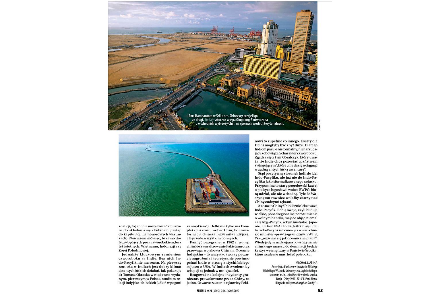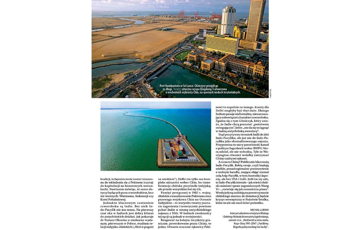 W ostatnim numerze zdjęcie portu w Colombo (ilustrujące tekst „Smok w pianie”) opisano jako port Hambantota. Wprawdzie oba porty leżą na Cejlonie, jednak to nie jedno i to samo.