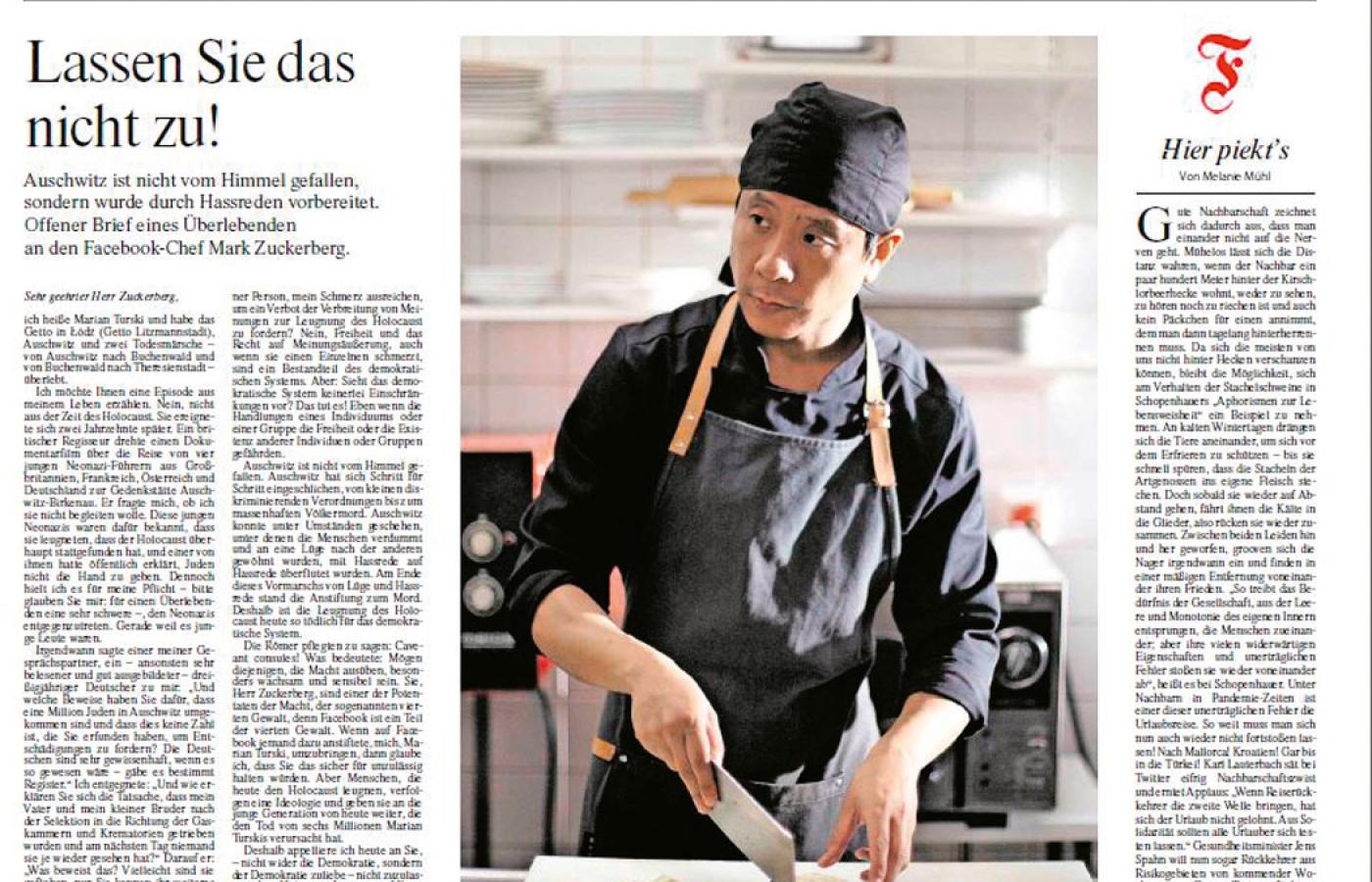 W ubiegłym tygodniu na łamach niemieckiego dziennika „Frankfurter Allgemeine Zeitung” ukazał się list Mariana Turskiego do Marka Zuckerberga, założyciela Facebooka. Apel naszego przyjaciela jest odpowiedzią m.in. na to, co ukazuje się we wspomnianym serwisie społecznościowym. Publikowane tam treści podlegają moderacji, ale wciąż zdarzają się materiały niezgodne z prawdą i dezinformujące, w tym także negujące Holokaust. Mark Zuckerberg w jednym z wywiadów oświadczył, że wpisy te nie będą kasowane ze względu na wolność słowa i przekonań. Zaznaczył, że zaprzeczanie Holokaustowi jest „głęboko obraźliwe”, ale nie może odmawiać ludziom prawa do opinii.
