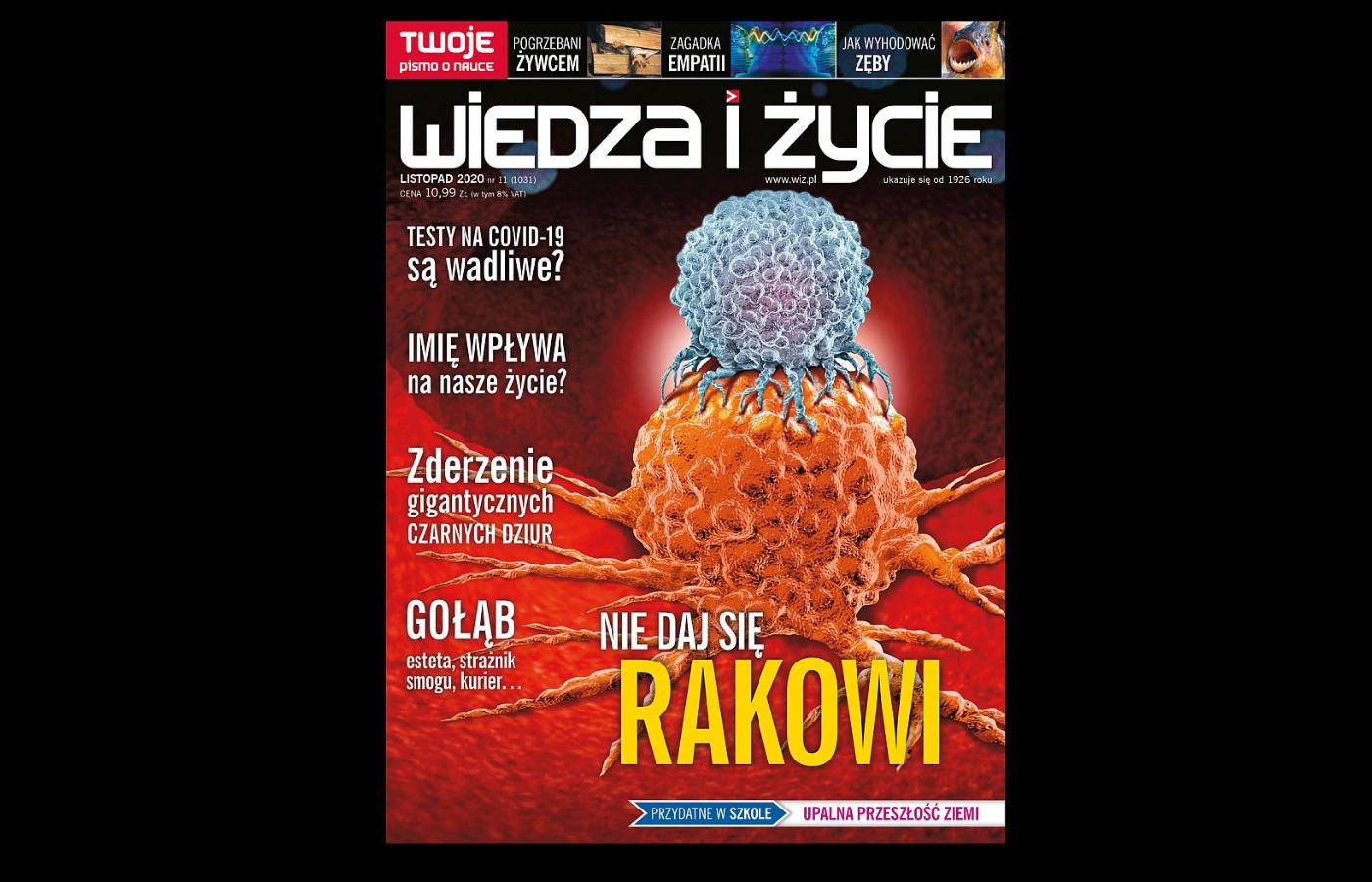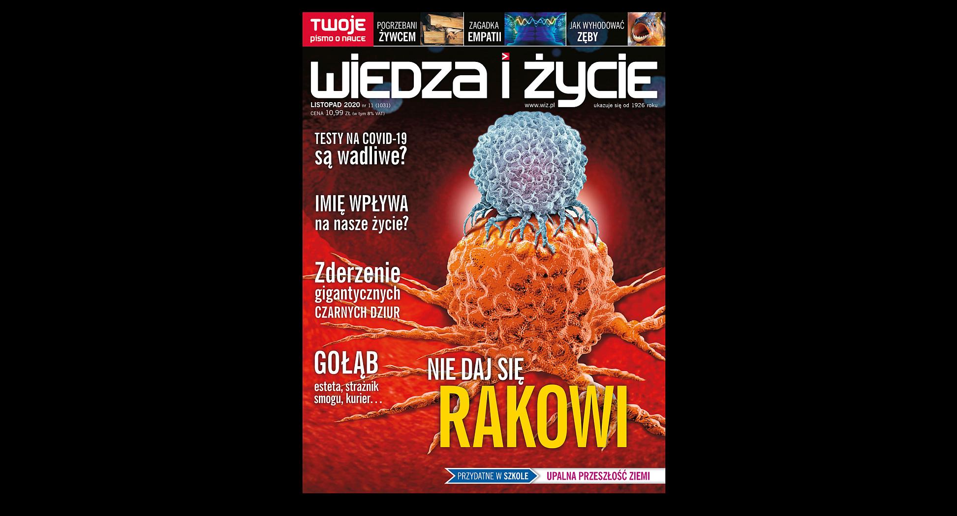 Gorąco zachęcamy do sięgnięcia po najnowszy numer naszego naukowego miesięcznika. Temat okładkowy poświęcamy tym razem walce z rakiem. Jak długo nowotwory pozostaną najsurowszym wyrokiem losu? Być może sekret ich pokonania tkwi w połączeniu różnych metod leczenia. Pisze o tym Paweł Walewski w artykule „Z czym na raka”, traktującym przede wszystkim o nowoczesnych sposobach zwalczania zagrażających naszemu życiu zmian. W numerze przeczytają Państwo o wiarygodności testów wykrywających materiał genetyczny wirusa wywołującego Covid-19 oraz o tym, czy warto robić testy na przeciwciała.