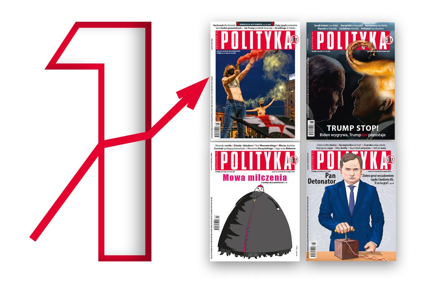 Miło nam poinformować, że według najnowszych danych Związku Kontroli Dystrybucji Prasy w listopadzie 2020 r. POLITYKA odnotowała najwyższą sprzedaż spośród wszystkich tygodników opinii w Polsce i kilkuprocentowy wzrost w stosunku do listopada 2019 r. Z wynikiem 93,7 tys. średnio sprzedanych egzemplarzy byliśmy tym samym najchętniej kupowanym pismem wśród tygodników opinii.