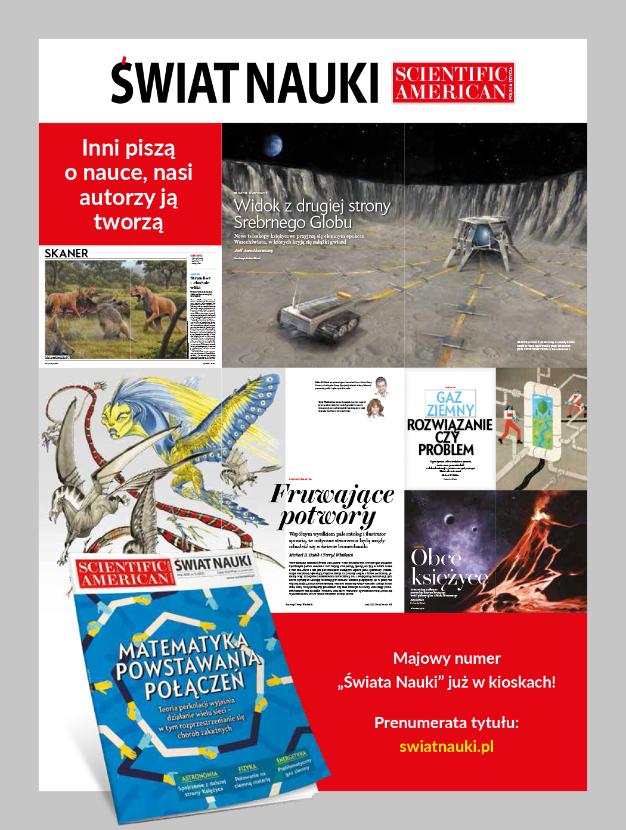 Majowy numer miesięcznika „Świat Nauki” będzie w sprzedaży od 28 kwietnia w kioskach (80 stron za 13,99 zł), w sklepie internetowym sklep.polityka.pl i w prenumeracie: swiatnauki.pl.