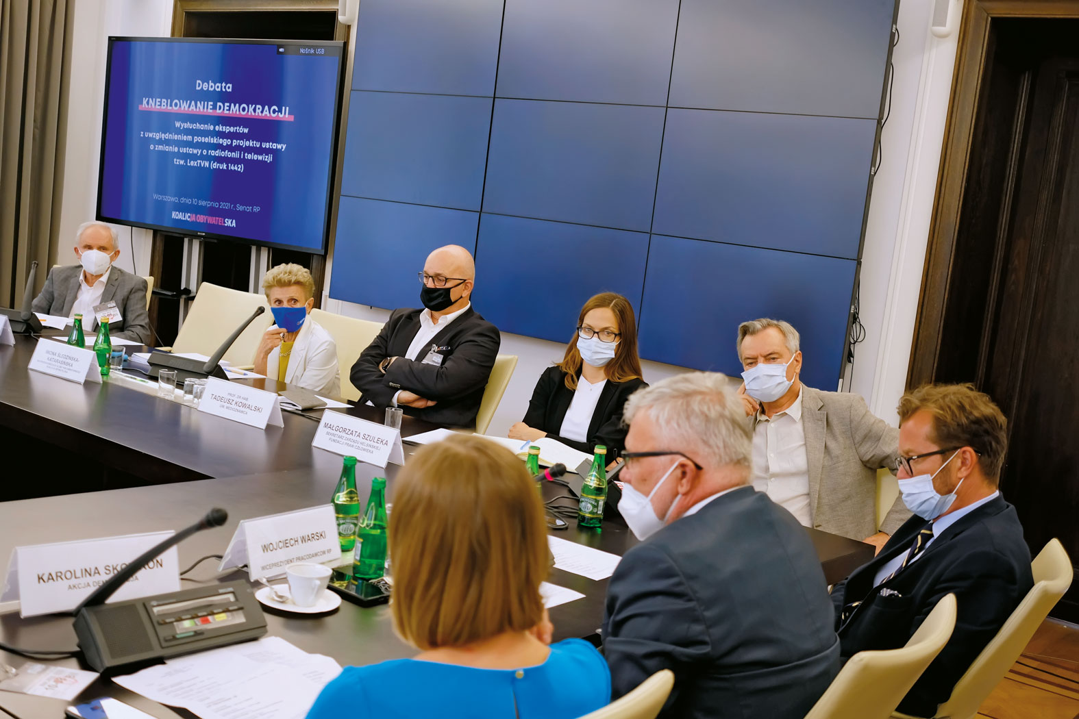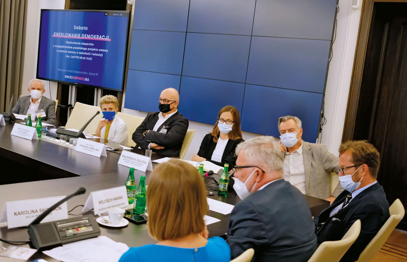 W ubiegłym tygodniu (10 sierpnia) w związku z forsowaniem przez PiS zmian w prawie umożliwiających wywłaszczenie amerykańskiego inwestora, właściciela stacji TVN, w Senacie odbyło się wysłuchanie publiczne zorganizowane przez klub parlamentarny Koalicji Obywatelskiej. W debacie pod hasłem „Kneblowanie demokracji” wzięło udział liczne grono ekspertów, którzy nie zostawili suchej nitki na tzw. ustawie lex TVN. Specjaliści od prawa, mediów i gospodarki zwracali uwagę na rzeczywisty cel rządzących: ograniczenie wolności słowa i zakneblowanie niezależnych dziennikarzy, oraz skutki, które przyniesie wdrożenie przepisów sygnowanych przez posła Marka Suskiego. Byli także zgodni, że na TVN się nie skończy.