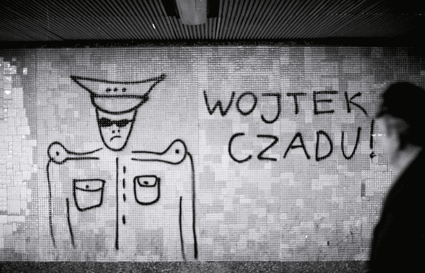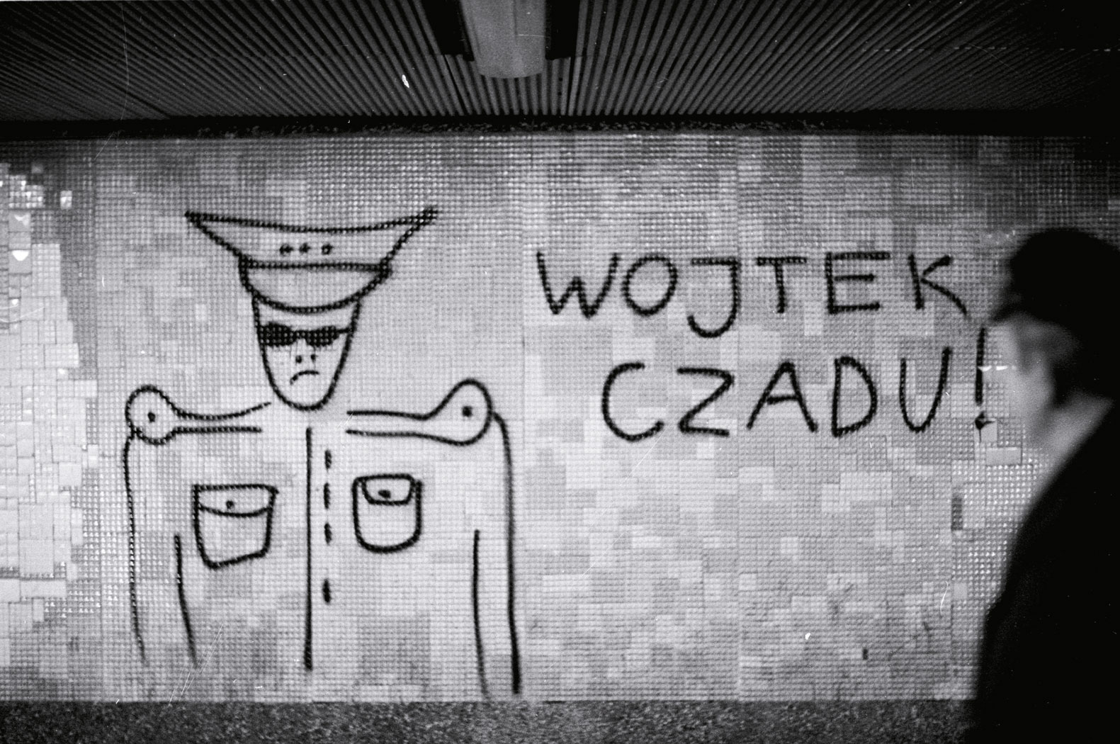 W fotoreportażu „Życie codzienne w stanie wojennym” (Na własne oczy, POLITYKA 50) jedno ze zdjęć przypomniało mi wieczór 12 grudnia 1981 r., kiedy to wraz z grupą nauczycieli przyjechaliśmy do Warszawy na wycieczkę do kina Relax, aby obejrzeć film prod. USA „Przeminęło z wiatrem”. Autokar był zaparkowany na parkingu przed Pałacem Kultury i Nauki. Przechodziliśmy przejściem podziemnym pod ul. Marszałkowską na wysokości Domów Towarowych Centrum i zapamiętałem wtedy ten rysunek, który uwieczniony został na fotografii na s. 103 – z napisem „Wojtek czadu!”. Ta sama mozaika na ścianie, ten sam rysunek generała w czarnych okularach… Nie wiem, czy takich rysunków było wtedy wykonanych więcej (pl. Na Rozdrożu?), ale taki był na pewno w przejściu podziemnym pod ul. Marszałkowską. WC