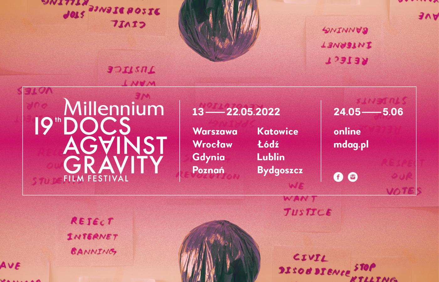 Festiwal Millennium Docs Against Gravity odbędzie się w dniach 12-22 maja w ośmiu miastach – Warszawie, Wrocławiu, Gdyni, Poznaniu, Katowicach, Lublinie, Bydgoszczy oraz po raz pierwszy w Łodzi. Od 24 maja do 5 czerwca potrwa część online na stronie mdag.pl. Zapraszamy!