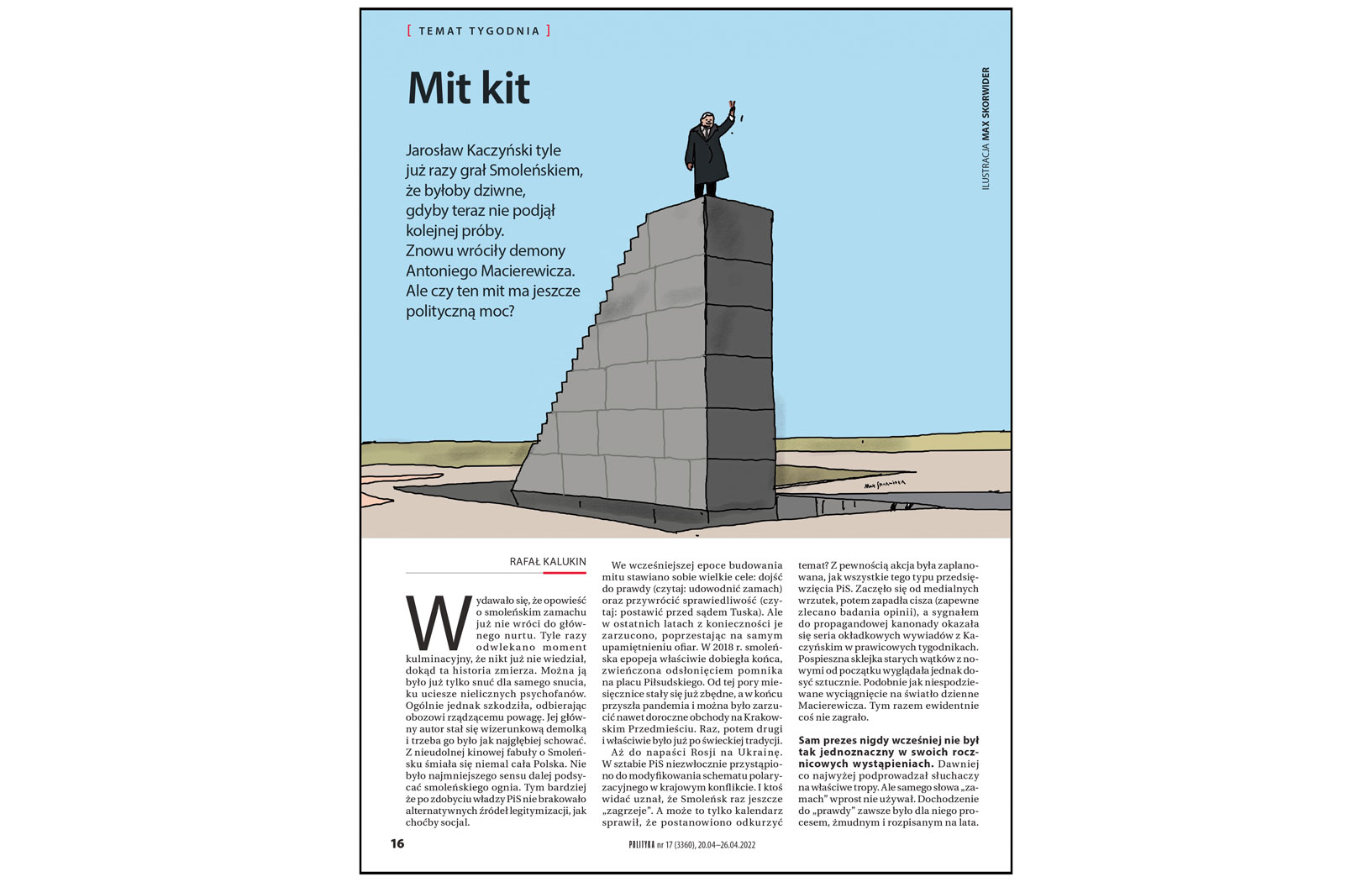 Odgrzanie przez PiS sprawy smoleńskiej i raport Macierewicza [o czym pisał ostatnio Rafał Kalukin w tekście „Mit kit”, POLITYKA 17] nasuwają skojarzenia z atmosferą wokół katastrofy gibraltarskiej. Zginął w niej polski premier, jego córka oraz grupa polskich i brytyjskich oficerów, łącznie 16 osób. Raport komisji RAF-u, pobieżny z uwagi na czas wojenny, wykluczył sabotaż, wskazując wyłącznie na techniczne przyczyny zdarzenia.