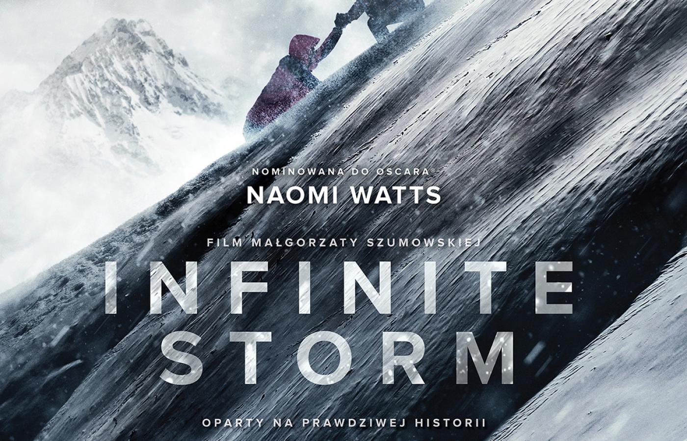 „Infinite Storm” to zapierająca dech w piersiach i mrożąca krew w żyłach wyprawa w jedno z najbardziej niebezpiecznych górskich pasm świata, gdzie porywy wiatru sięgają 300 km na godzinę, a pogoda zmienia się nieustannie. To również opowieść o innych żywiołach: stracie, ryzyku i odwadze, która pozwala wyjść cało z najgorszej życiowej nawałnicy. Główną rolę w inspirowanym prawdziwą historią thrillerze zagrała hollywoodzka gwiazda Naomi Watts („Niemożliwe”, „Birdman”, „Mulholland Drive”), w idealnych proporcjach łącząc kruchość z niezłomnością.