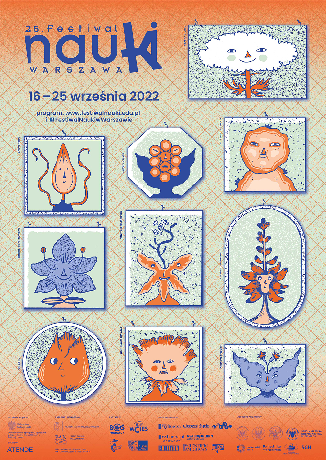 Przypominamy, że wstęp na imprezy jest bezpłatny i otwarty dla wszystkich zainteresowanych. Na niektóre spotkania – odpowiednio oznaczone w programie – obowiązują zapisy. Szczegółowy program festiwalu znajduje się na stronie: festiwalnauki.edu.pl.