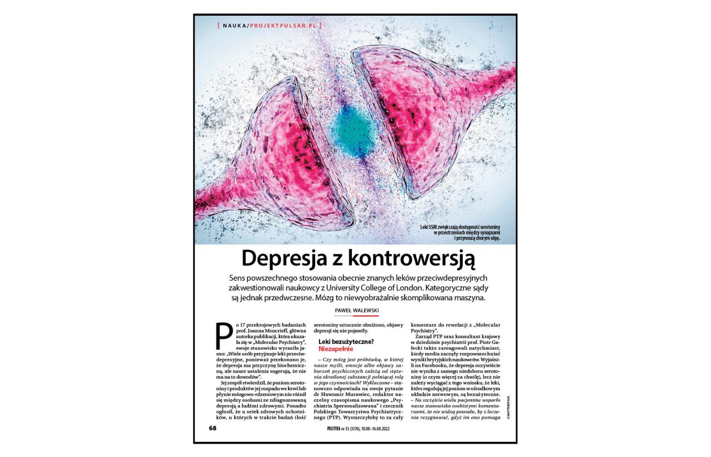 Wyniki badań, które zainspirowały Pawlikowską do nagrania swojego wykładu, przedstawiliśmy już pół roku temu [„Depresja z kontrowersją”, POLITYKA 33/22]. Z ważnym komentarzem rzecznika Polskiego Towarzystwa Psychiatrycznego dr. Sławomira Murawca, który wyjaśniał, dlaczego z niektórych badań nie należy wyciągać pochopnych wniosków o bezużyteczności nowoczesnych antydepresantów.
