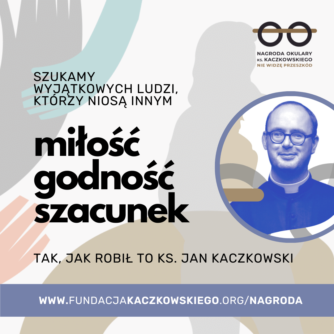 „Szukamy wyjątkowych ludzi, którzy niosą innym miłość, godność, szacunek, tak jak robił to ks. Jan Kaczkowski” – pod takim hasłem ruszyła 3. edycja konkursu „Okulary ks. Kaczkowskiego. Nie widzę przeszkód”. Kandydatów można zgłaszać do 31 maja br. Gala nagrody, na której poznamy tegorocznego laureata, odbędzie się w Sopocie jesienią.