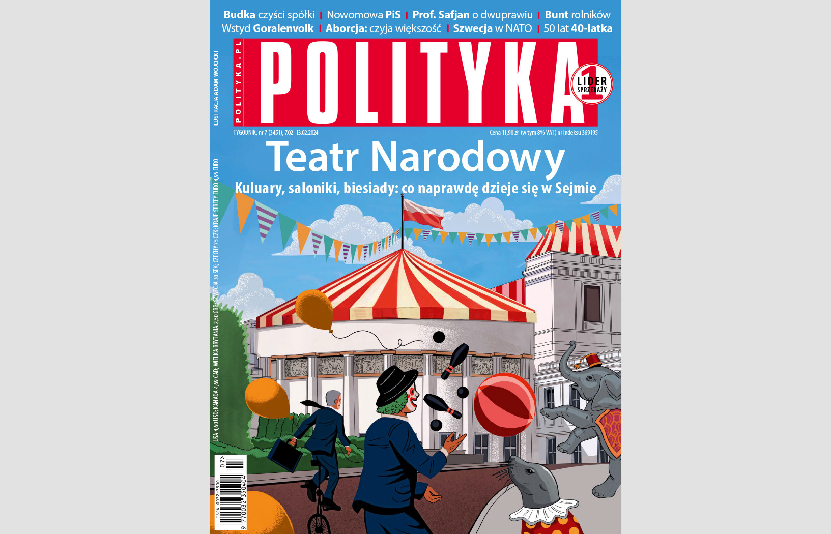 Na rysunkowej okładce poprzedniego numeru POLITYKI, ukazującej satyryczny obraz polskiego Sejmu jako miejsca politycznych przedstawień, cyrku i teatru, użyliśmy żartobliwie nazwy Teatr Narodowy, pisanej oczywiście bez cudzysłowu. Miłośnikom, widzom i pracownikom prawdziwego Teatru Narodowego w Warszawie, którego jesteśmy wielbicielami, wyjaśniamy, że bylibyśmy szczęśliwi, gdyby spektakle w polskim Sejmie miały taką klasę jak w Teatrze Narodowym.