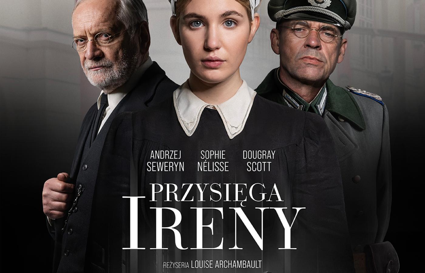 „Przysięga Ireny” to prawdziwa, przejmująca opowieść o zachowaniu człowieczeństwa w nieludzkich czasach II wojny światowej. Historia jest oparta na faktach z życia Ireny Gut-Opdyke, która z narażeniem życia ratowała Żydów ukrywających się po likwidacji getta. W głównych rolach zobaczymy gwiazdy światowego kina: Sophie Nelisse i Dougraya Scotta. W obsadzie polsko-kanadyjskiej koprodukcji znaleźli się również: Andrzej Seweryn, Filip Kosior, Rafał Mohr, Eliza Rycembel, Tomasz Tyndyk, Irena Melcer, Eryk Kulm Jr, Mateusz Mosiewicz, Rafał Maćkowiak, Maciej Nawrocki, Zuza Puławska, Krzysztof Szczepaniak, Aleksandar Milićević i Agata Turkot. Reżyserką obrazu jest wielokrotnie nagradzana Louise Archambault, natomiast za zdjęcia odpowiada Paul Sarossy. Scenariusz napisał Dan Gordon, który jest również autorem sztuki o Irenie Gut-Opdyke, która zdobyła serca nowojorskiej widowni offbroadwayowskiej sceny w 2008 roku. Światowa premiera filmu miała miejsce na 48. Międzynarodowym Festiwalu Filmowym w Toronto.