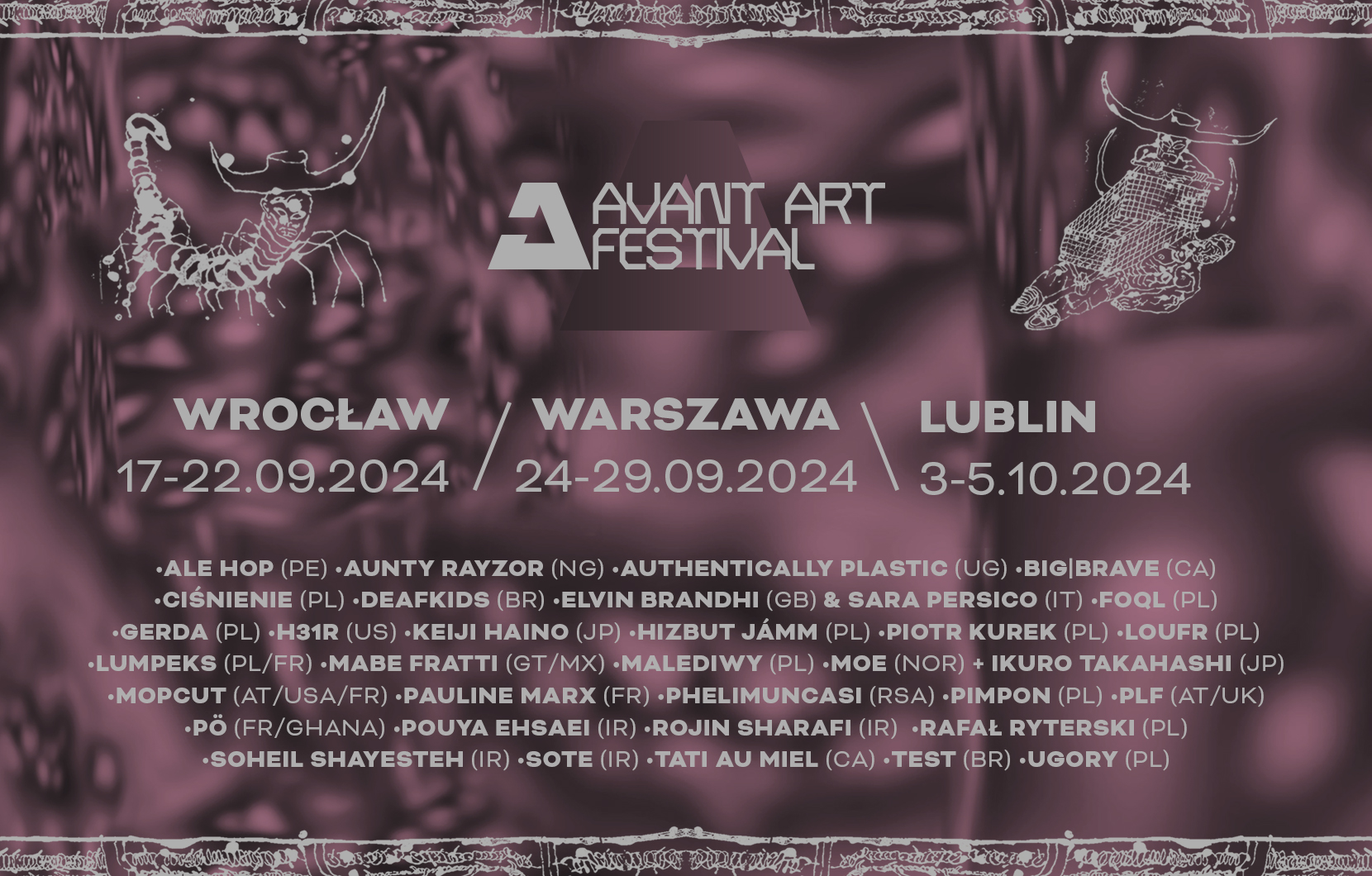 Zapraszamy na Avant Art Festival do Wrocławia, Warszawy i Lublina, informacje nt. kalendarza imprez, artystów czy Partnerów festiwalu dostępne są na stronie festiwalu i na festiwalowym profilu FB