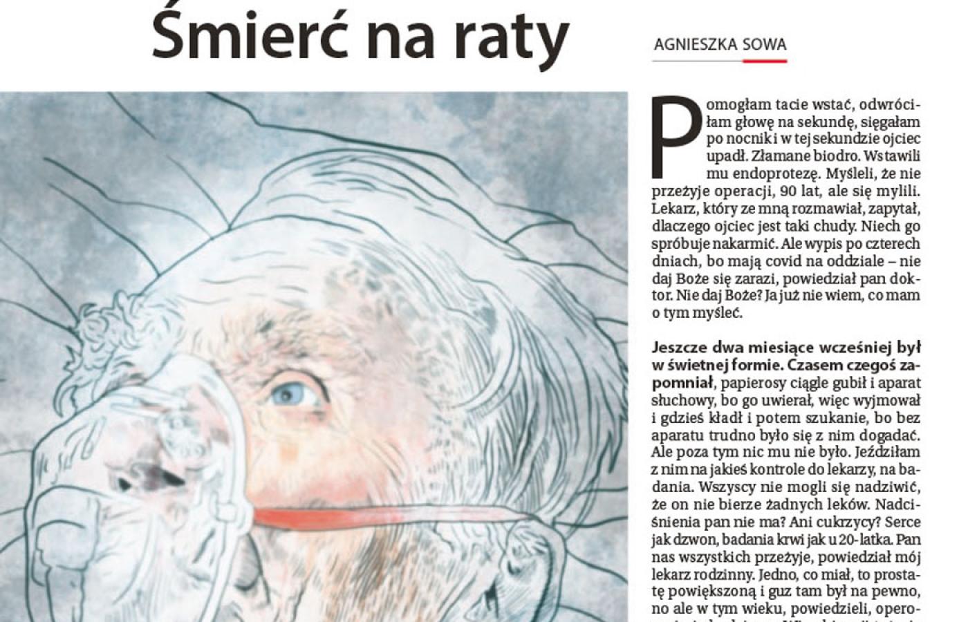 Po przeczytaniu artykułu „Śmierć na raty” chcę powiedzieć, że byłam jedną z tych osób opiekujących się niedołężnym ojcem przez trzy lata. Potwierdzam wszystko to, co znalazło się w artykule Agnieszki Sowy – brak miejsc w ZOL, oczekiwanie na miejsce w domu opieki, rezygnacja z pracy zawodowej, załatwianie wszystkiego samemu lub dzięki tzw. znajomości.