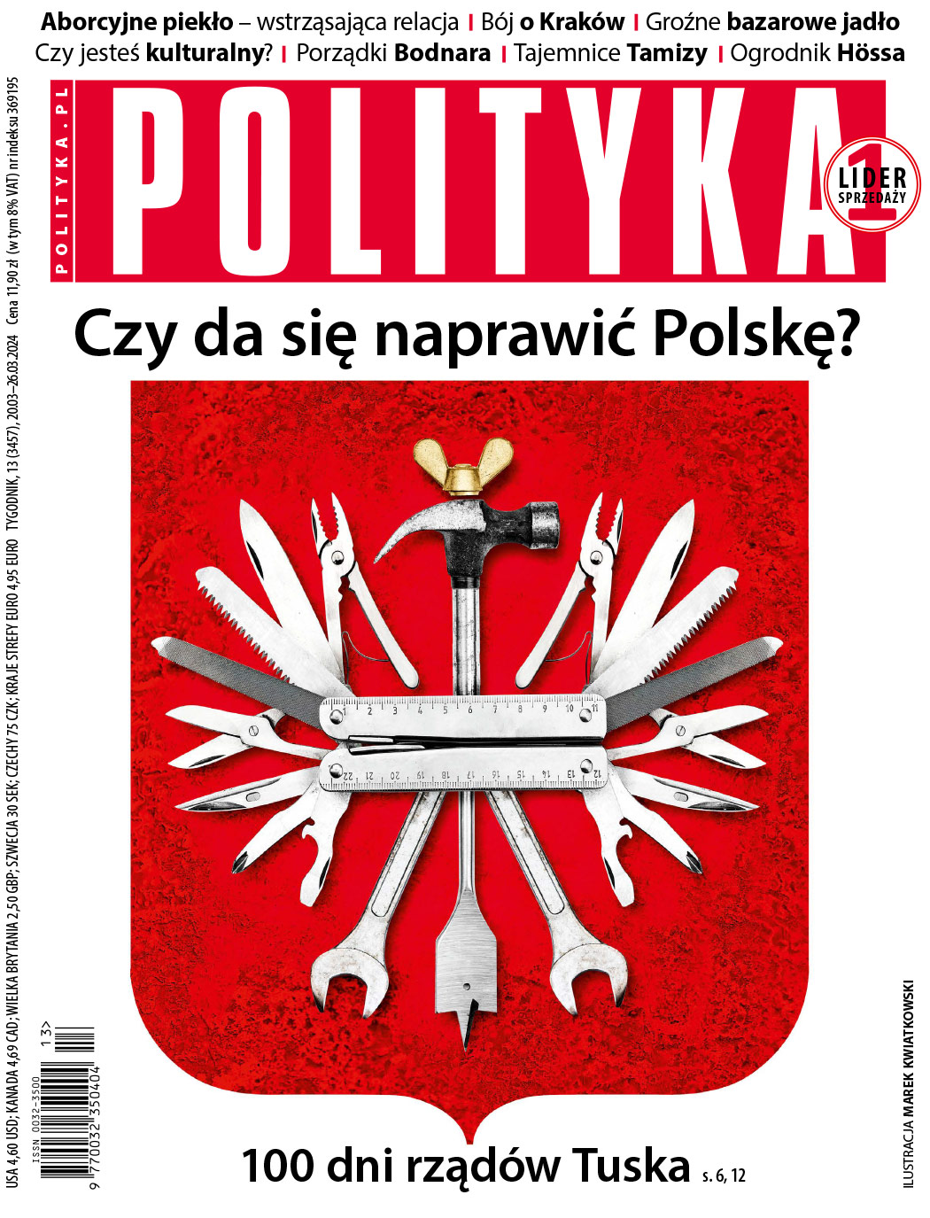 Z dumą informujemy, że grafik tygodnika „Polityka” Marek Kwiatkowski kolejny raz został nagrodzony – tym razem uhonorowano go nagrodą prezydenta miasta Legnicy, przyznawaną tradycyjnie podczas legnickiego Satyrykonu. „Wybór nie był łatwy, ale praca znanego artysty zwróciła moją szczególną uwagę” – podkreślał prezydent Maciej Kupaj, wyróżniając grafikę Marka zatytułowaną „Jak naprawiać Polskę”. Czytelnikom „Polityki” jest ona doskonale znana, ponieważ znalazła się na okładce jednego z ubiegłorocznych numerów naszego tygodnika (13/24).