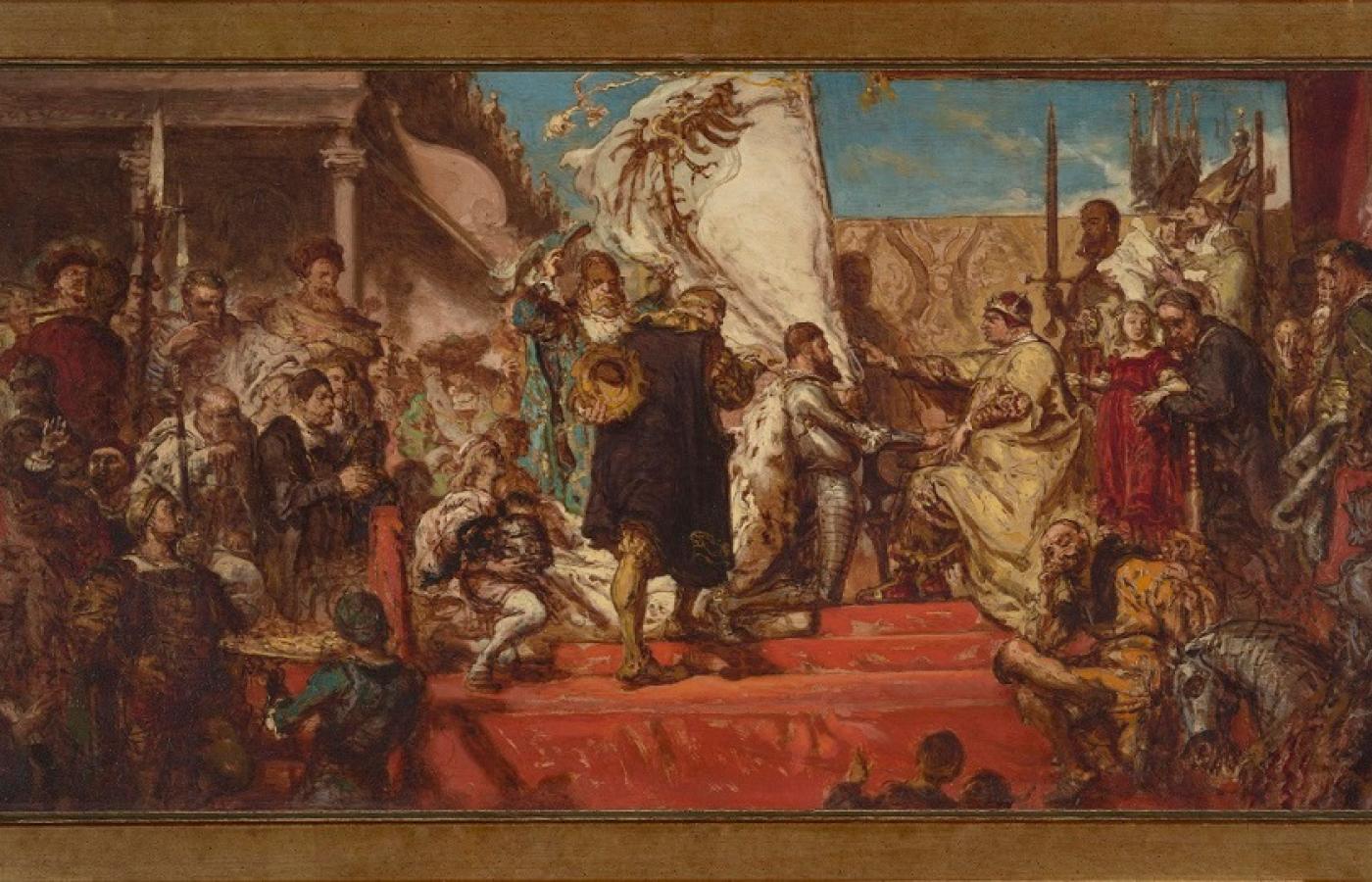 Ostatnia część ekspozycji skupia się na pamięci o wydarzeniach z 1525 roku oraz na ich interpretacjach w polskiej i europejskiej kulturze. Od malarstwa Marcello Bacciarellego, przez dzieło Jana Matejki „Hołd Pruski”, aż po twórczość współczesnych artystów, takich jak Jan Świerczyński, Tadeusz Kantor czy Edward Dwurnik – wystawa ilustruje różnorodność sposobów, w jakie to historyczne wydarzenie było odbierane i przetwarzane przez kolejne pokolenia. W XIX wieku Jan Matejko stworzył swoją monumentalną wizję hołdu pruskiego (1880–1882), podkreślając świetność dawnej Rzeczpospolitej oraz tragiczne konsekwencje rozbiorów. Obraz namalowany „ku pokrzepieniu serc” był szeroko reprodukowany i stał się symbolem zmagań Polski z Niemcami. Na wystawie będziemy mogli podziwiać szkic olejny pędzla mistrza oraz kilka artefaktów przeniesionych wówczas na wielkie płótno, prezentowane obecnie w krakowskich Sukiennicach.