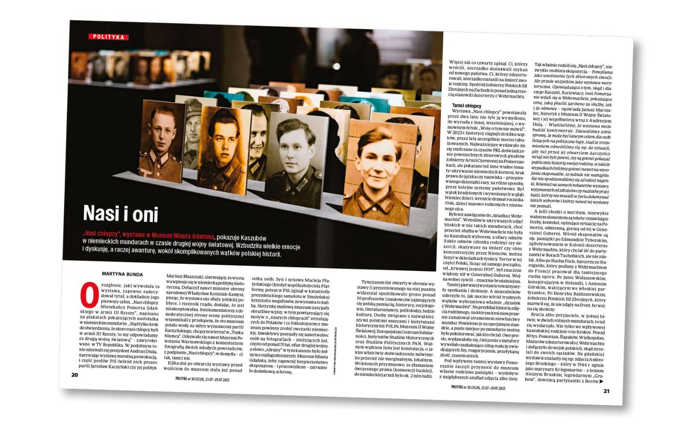 Odkąd zaczęło być głośno o wystawie zorganizowanej w Muzeum Gdańska, moi znajomi popierający polską prawicę: PiS i Konfederację, bezkrytycznie zaczęli udostępniać posty nazywające tę wystawę „hańbą” lub „skandalem”. Również ci, którzy mieli rodziców lub dziadków w Wehrmachcie i Kriegsmarine. Kaszubi związani członkostwem w prawicowych partiach poszli jeszcze dalej, krzycząc, że ta wystawa jest „podszeptem diabła” – to dosłowny cytat, a nie parafraza.