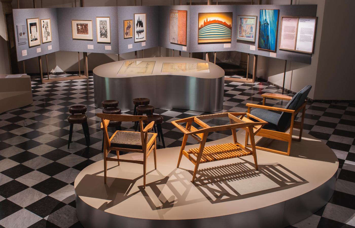 - Do współpracy przy realizacji tego celu zaproszono prof. Mariana Sigmunda, architekta wnętrz, który zaprojektował m.in. bibliotekę oraz salę wykładową, a także gabinety – kustosza biblioteki oraz archiwisty wraz z ich całym wyposażeniem. Zaprojektowane przez niego meble o designerskich formach do dziś służą pracownikom muzeum swoją niezwykle użytkową formą. By opowiedzieć