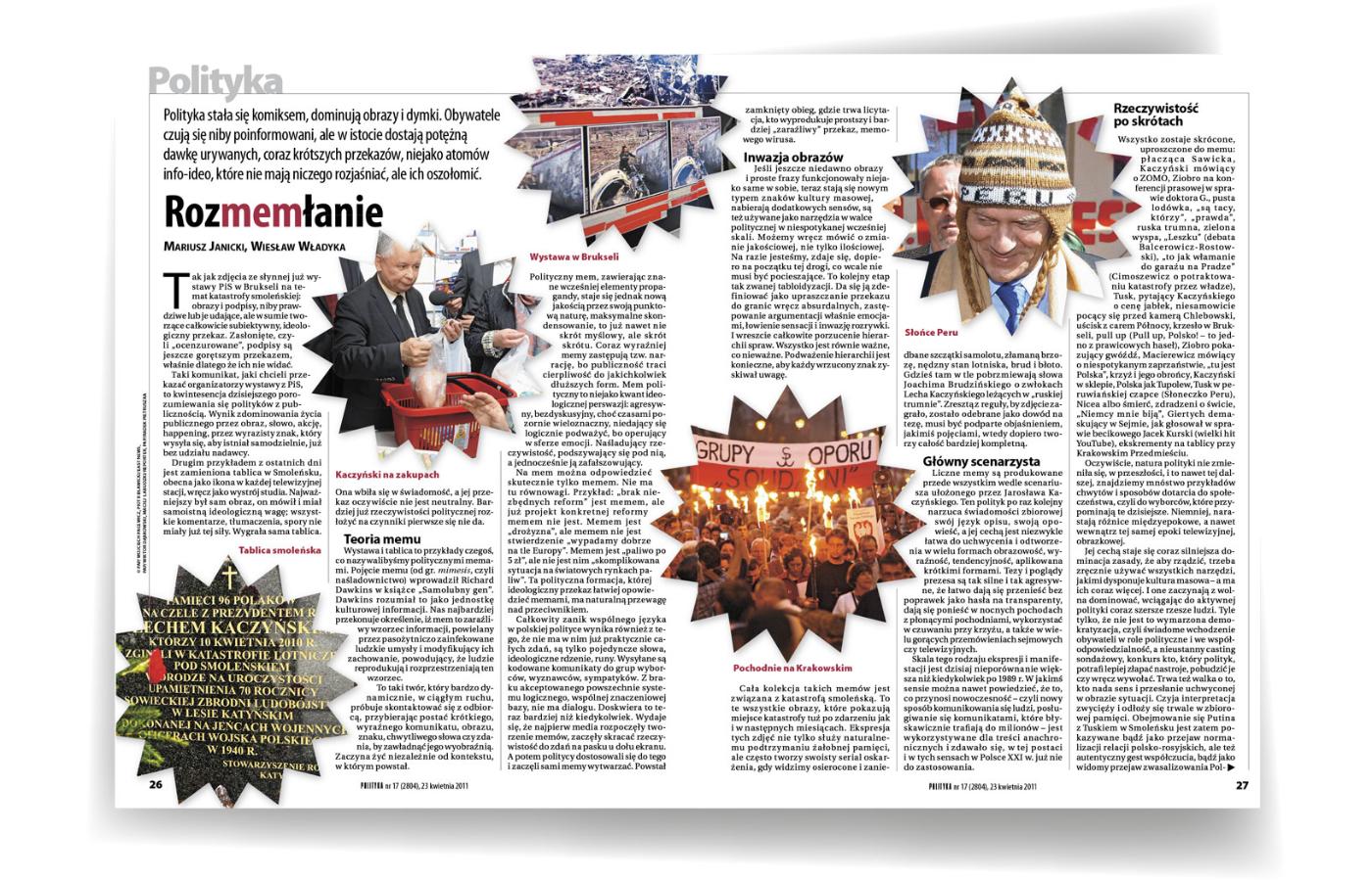 W tej memowej wojnie, jeśli brać pod uwagę emocjonalność przekazu, przewagę ma PiS. Wrak, zabrana tablica, bohaterski prezydent w Gruzji, Wawel, krzyż, walka o pomnik, prezes PiS przed pałacem, frazy typu „państwa nie ma”. Ta martyrologiczna ikonografia nie napotyka z drugiej strony równie gorącego zestawu. Ale memy są bronią obosieczną. Mobilizują jednych, odstraszają innych. Żyją własnym życiem.