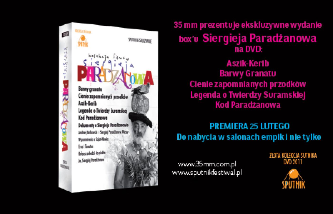 W skład Box’u wejdą filmy prezentowane podczas tegorocznej edycji Festiwalu Filmów Rosyjskich w ramach retrospektywy reżysera, cieszącej się niebywałą popularnością wśród publiczności. Będą to najwybitniejsze dzieła Siergieja Paradżanowa: Aszik-Kerib (1988), Barwy Granatu (1968), Cienie zapomnianych przodków (1964), Legenda o Twierdzy Suramskiej (1985), a także Kod Paradżanowa – seria pięciu filmów dokumentalnych poświęconych twórcy.